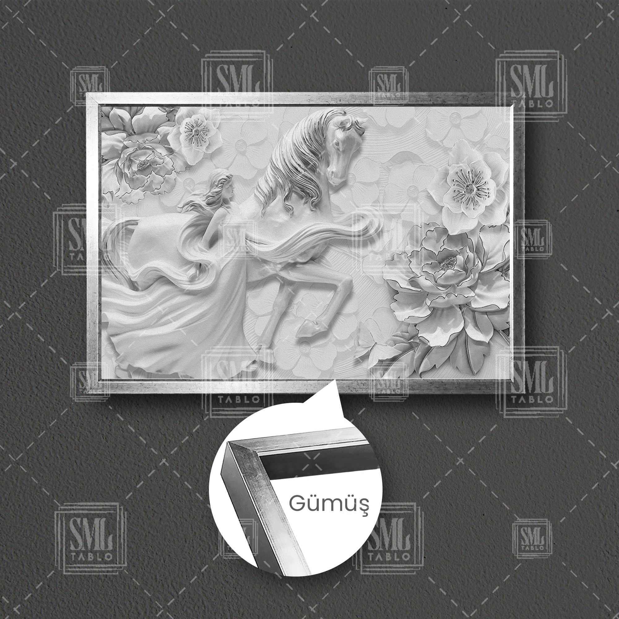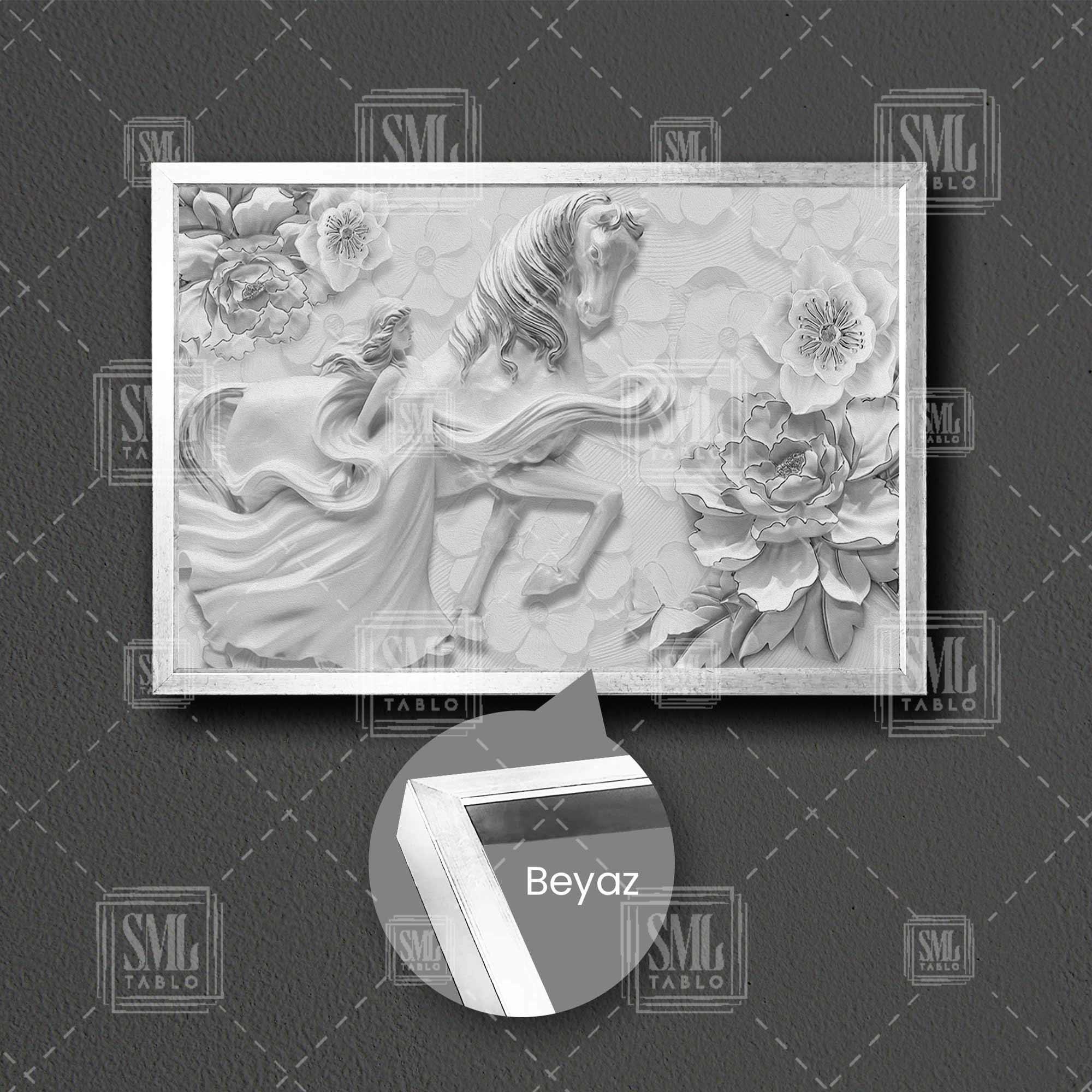 | Etiketler | 3D Efektli Elbiseli Kadın Beyaz At Kabartma Gül Çerçeveli Yatay Kanvas Tablo Tablosu Tabloları Tuvali |