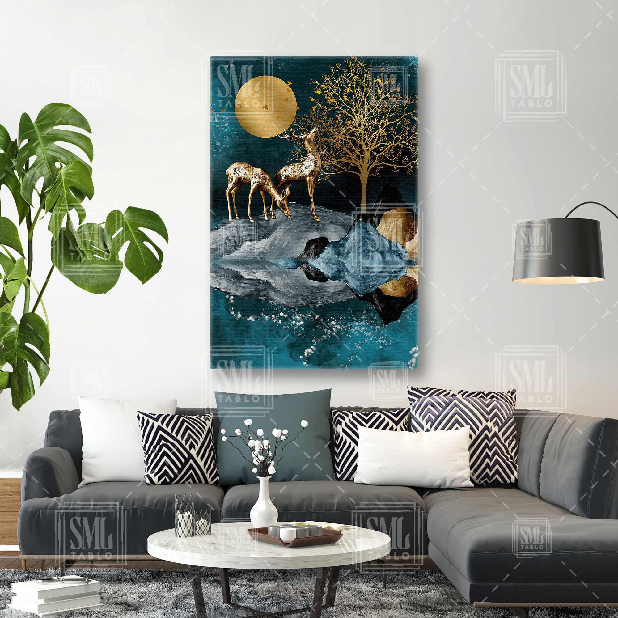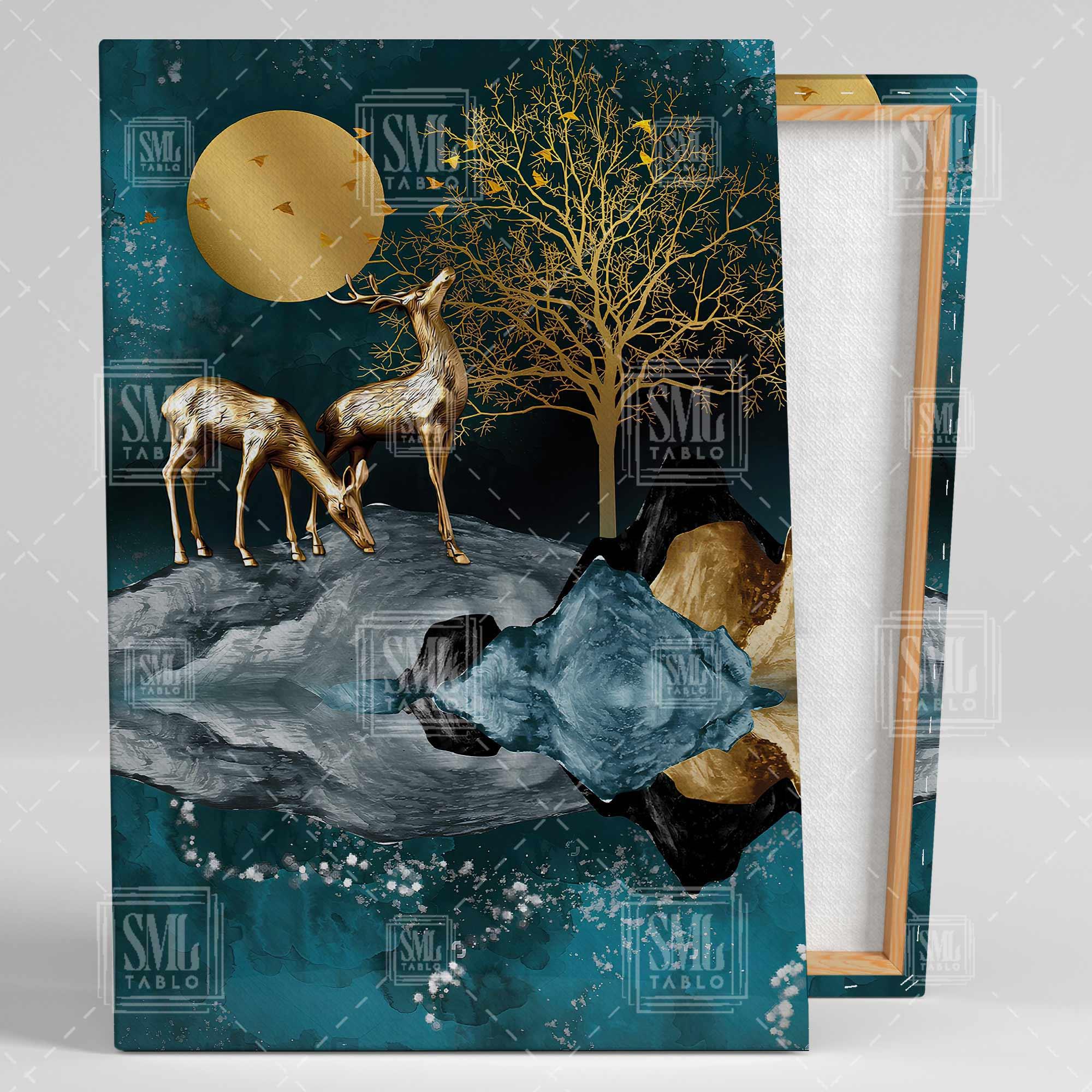 | Etiketler | Altın Geyik Manzara ve Turkuaz Gold Göl Kenarında Orman Geyiği Soyut Dekor Dikey Kanvas Tablo Tablosu Tabloları Tuvali |