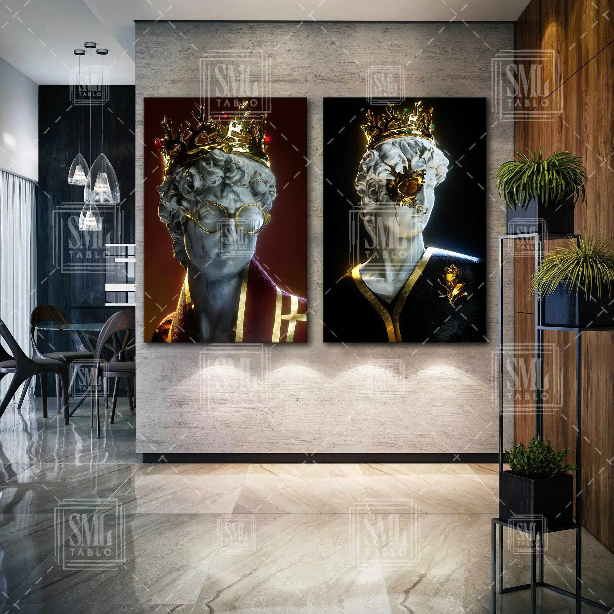 | Etiketler | Altın Taçlı Kırmızı Siyah Elbiseli Heykel Modern Sanat Gold Dekor İkili Kombin 2 li Set Kanvas Tablo Tablosu Tabloları Tuvali Poster Posteri |