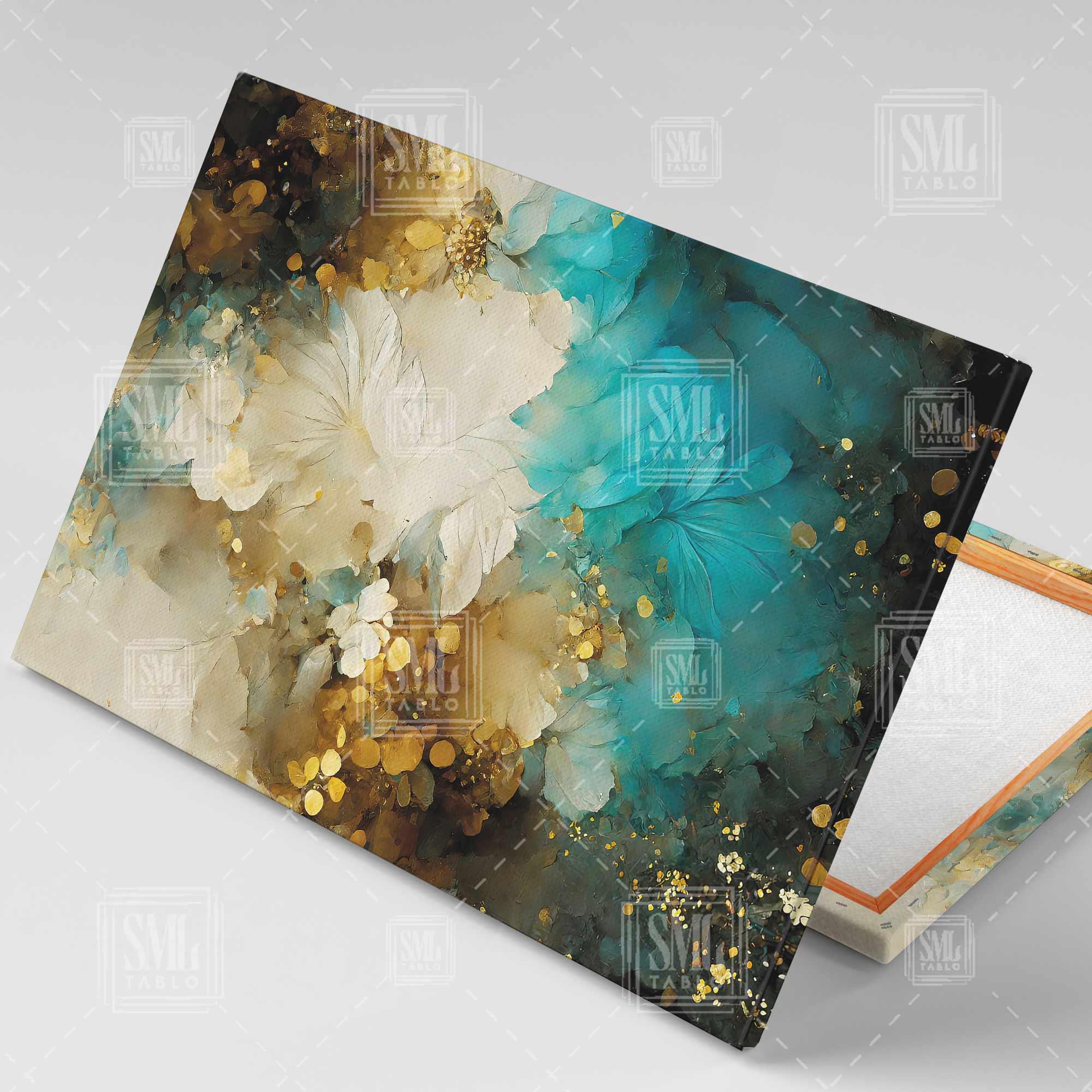| Etiketler | Altın Ve Deniz Mavisi Çiçekler Soyut Dekoratif Abstract Turkuaz Yatay Kanvas Tablo Tablosu Tabloları Tuvali |