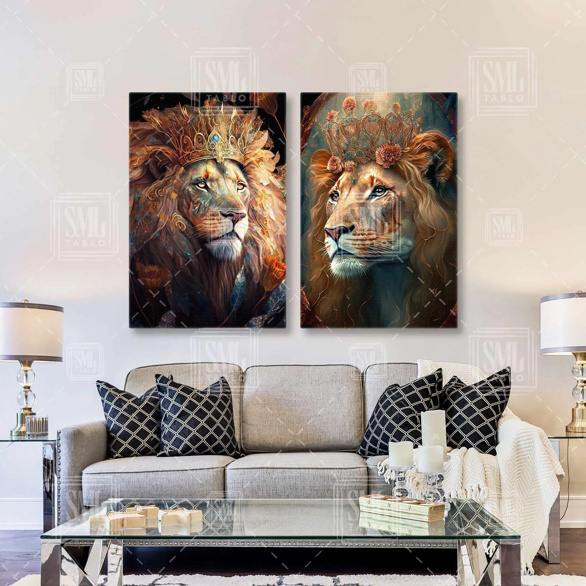 | Etiketler | Aslan ve Kaplan Gold Taç Yapraklar ve Çiçekler Fantastik İkili Kombin 2 li Set Kanvas Tablo Tablosu Tabloları Tuvali Poster Posteri |