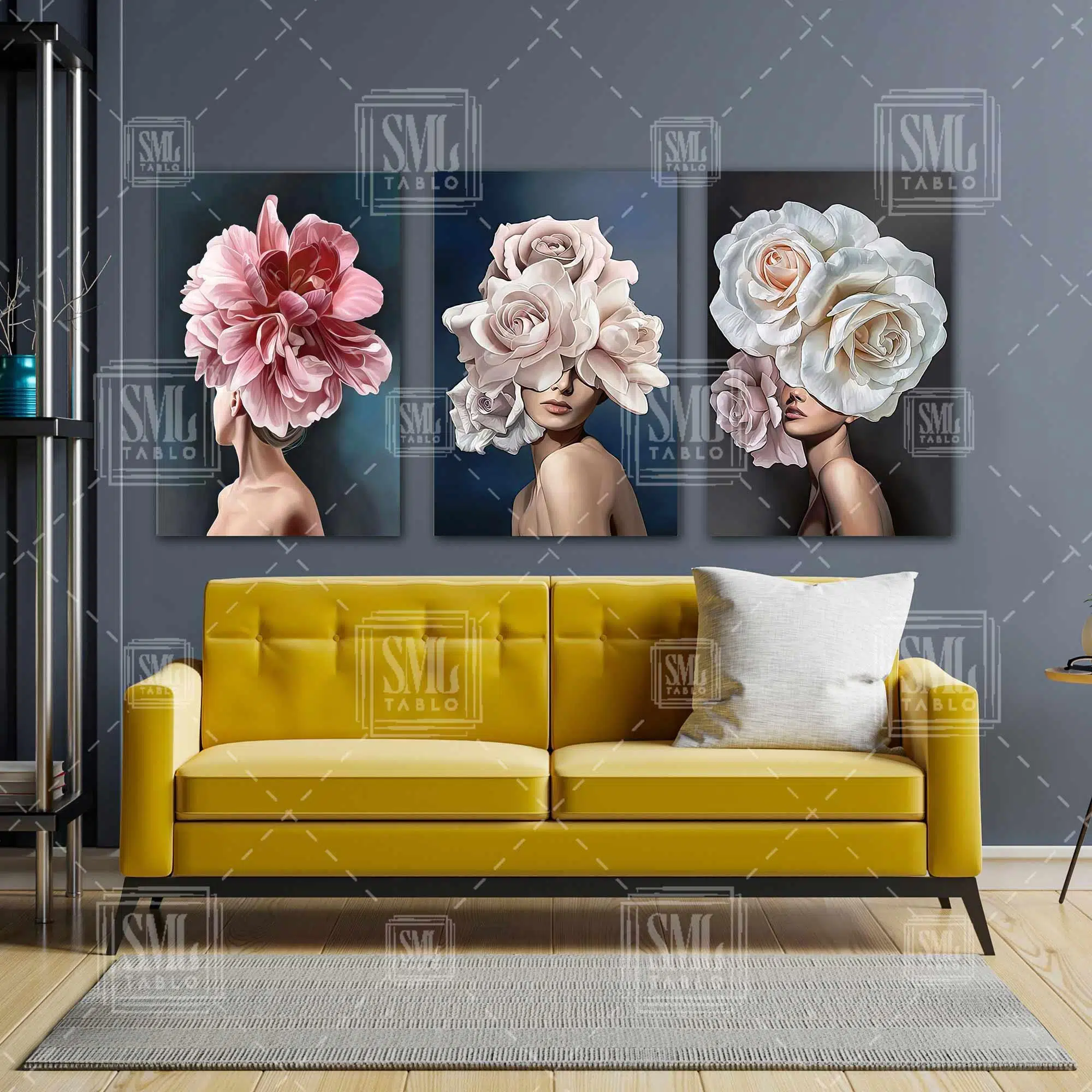 | Etiketler | Çiçek Kafalı Kadın Mankenler Woman Makyaj Üçlü Kombin 3 lü Set Kanvas Tablo Tablosu Tabloları Tuvali Poster Posteri |