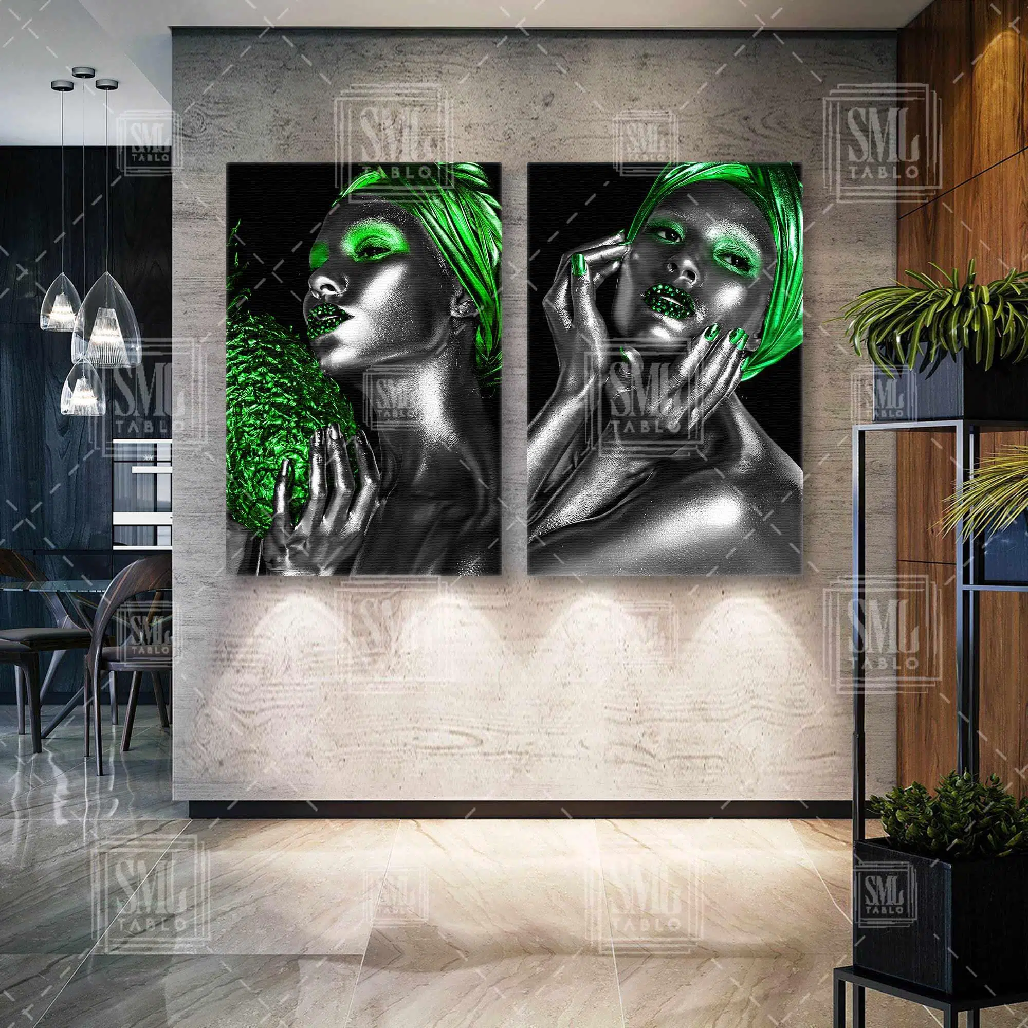 | Etiketler | Elinde Ananas Tutan Yeşil Saç Aksesuarlı Makyajlı Gümüş Kadın İkili Kombin 2 li Set Kanvas Tablo Tablosu Tabloları Tuvali Poster Posteri |