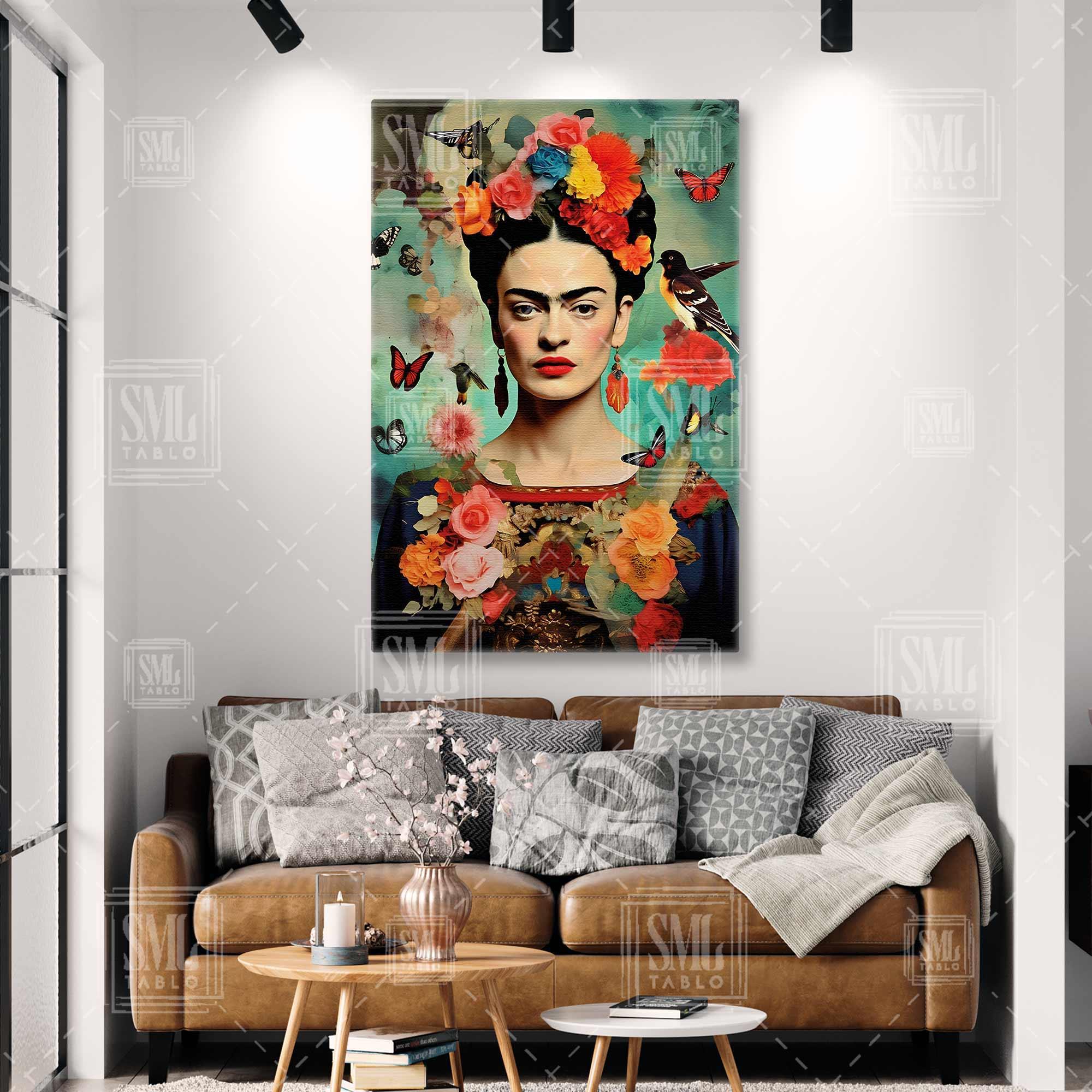 | Etiketler | Etrafında Kelebekler ve Kuşlarla Çiçek Taçlı Frida Kahlo Dikey Kanvas Tablo Tablosu Tabloları Tuvali |