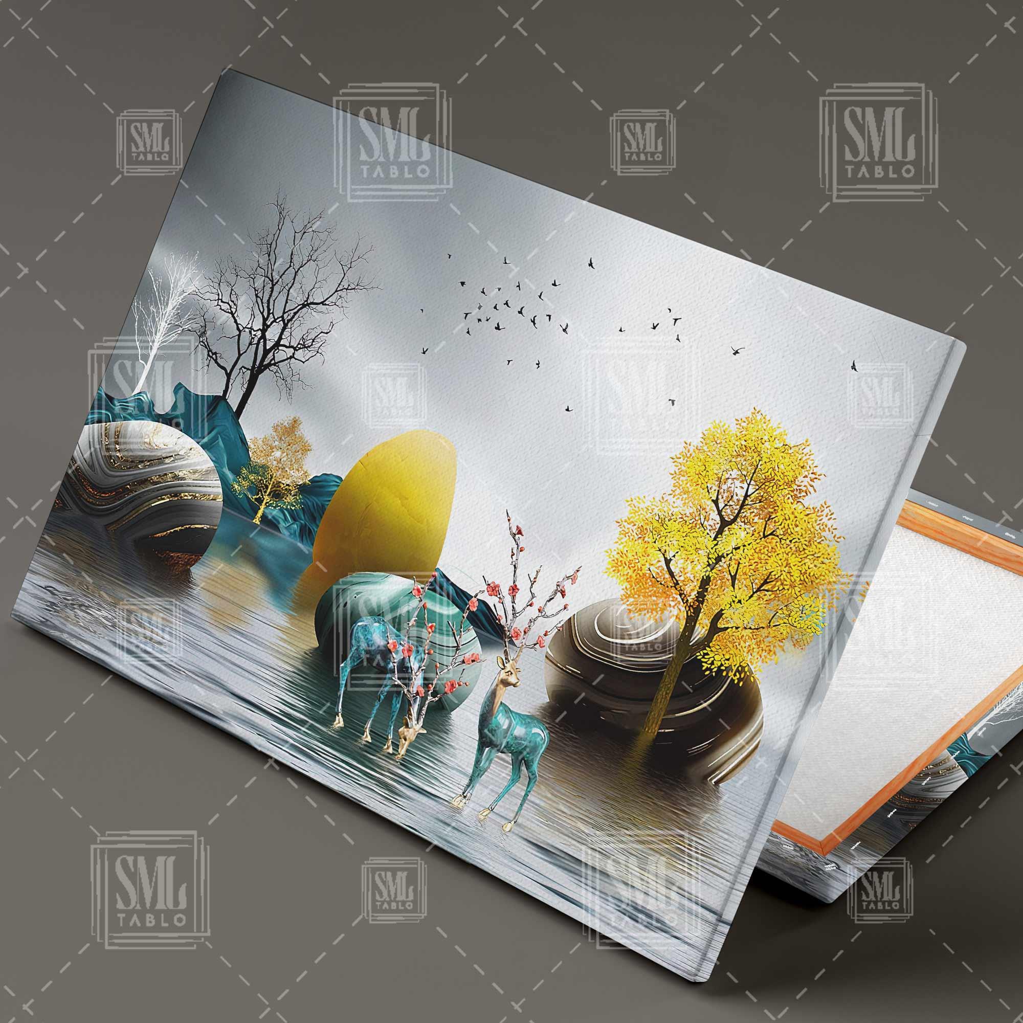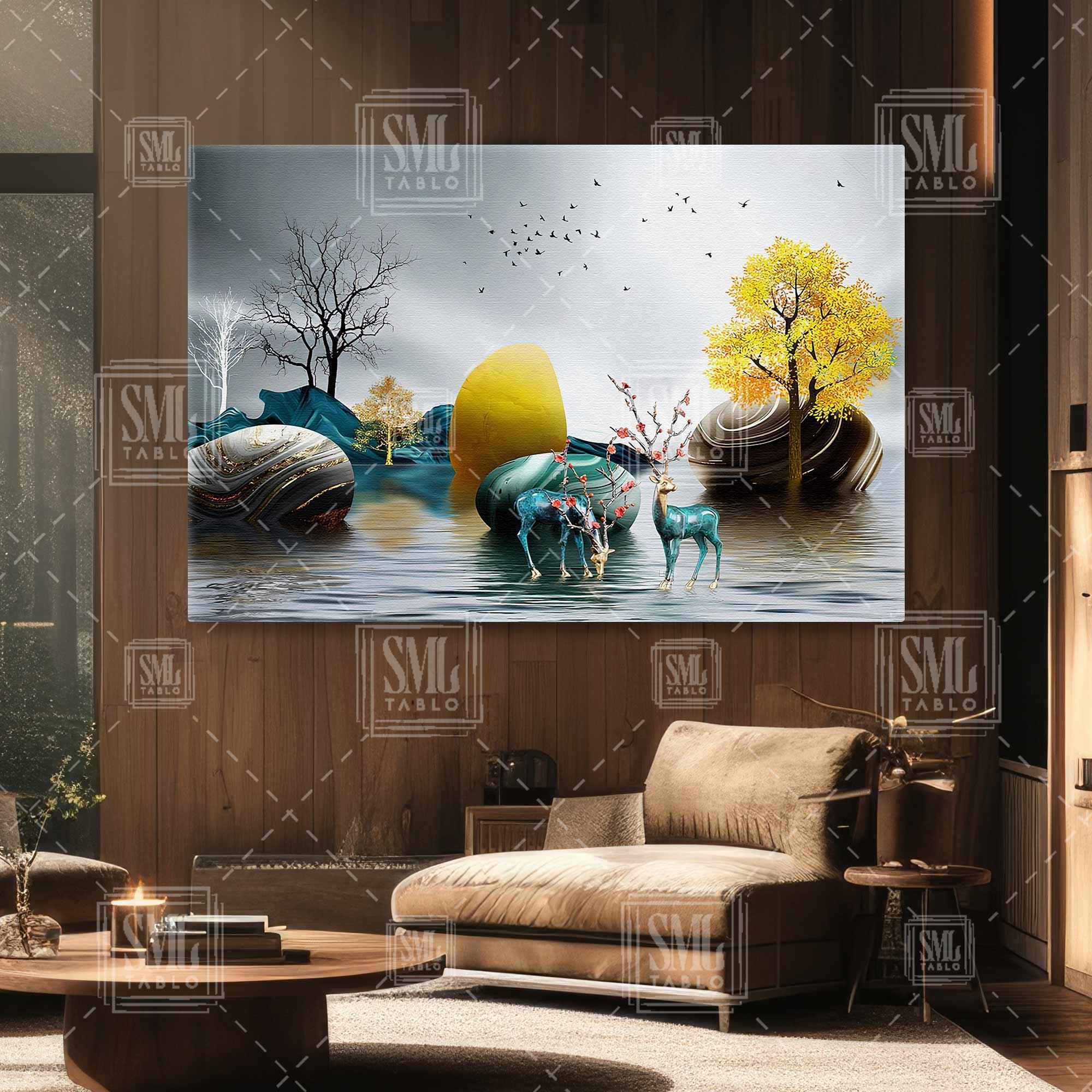 | Etiketler | Göl Üzerindeki Orman Gold Detaylı Taşlar Çiçek Boynuzlu Geyik Çifti Yatay Kanvas Tablo Tablosu Tabloları Tuvali |