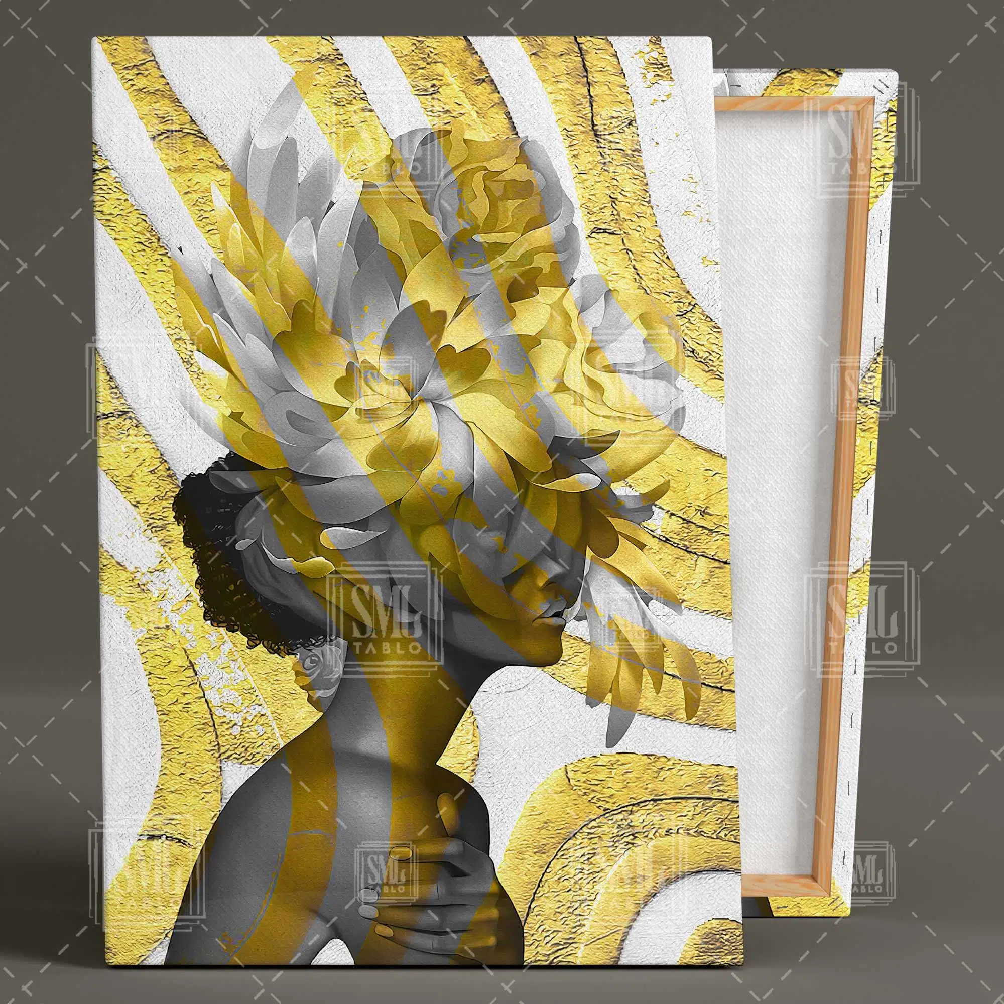 | Etiketler | Gold Detaylı Başında Çiçek Olan Kadın Dikey Kanvas Tablo Tablosu Tabloları Tuvali Poster Posteri |
