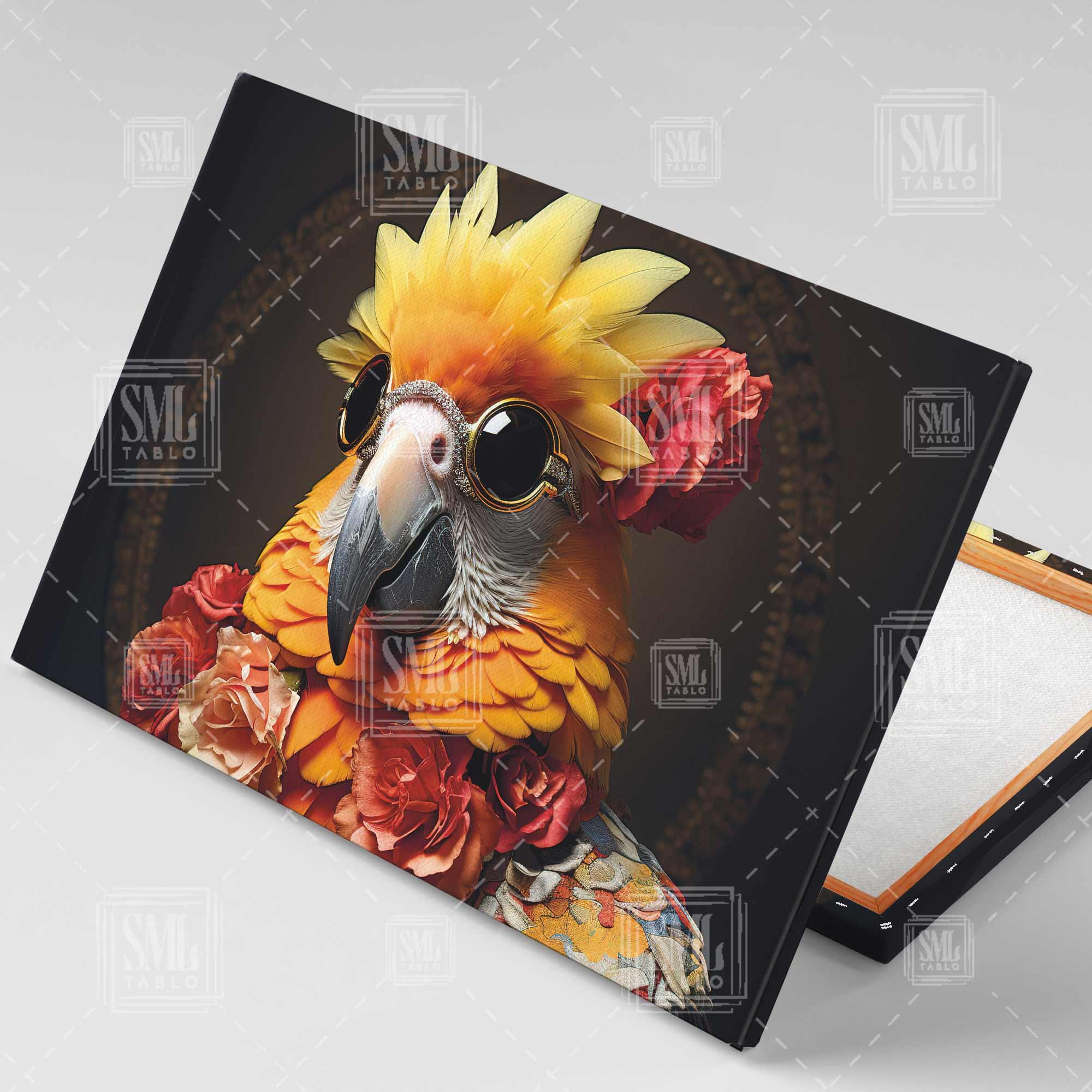 | Etiketler | Gözlüklü Karizmatik Sarı Papağan Kırmızı Güller Yatay Kanvas Tablo Tablosu Tabloları Tuvali |