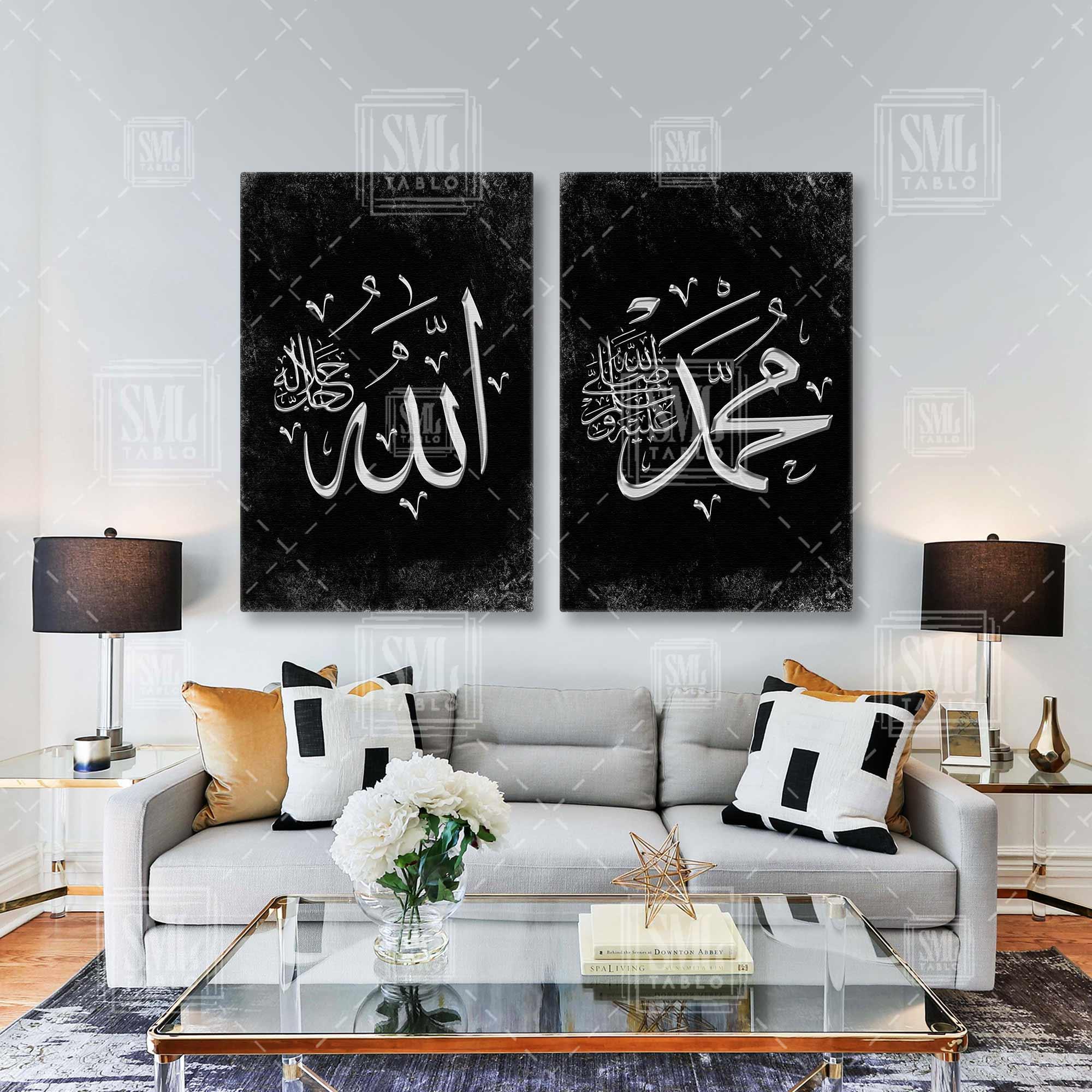 | Etiketler | Gümüş Allah Muhammed Yazısı Hat Sanatı Kaligrafi İkili Kombin 2 li Set Kanvas Tablo Tablosu Tabloları Tuvali |