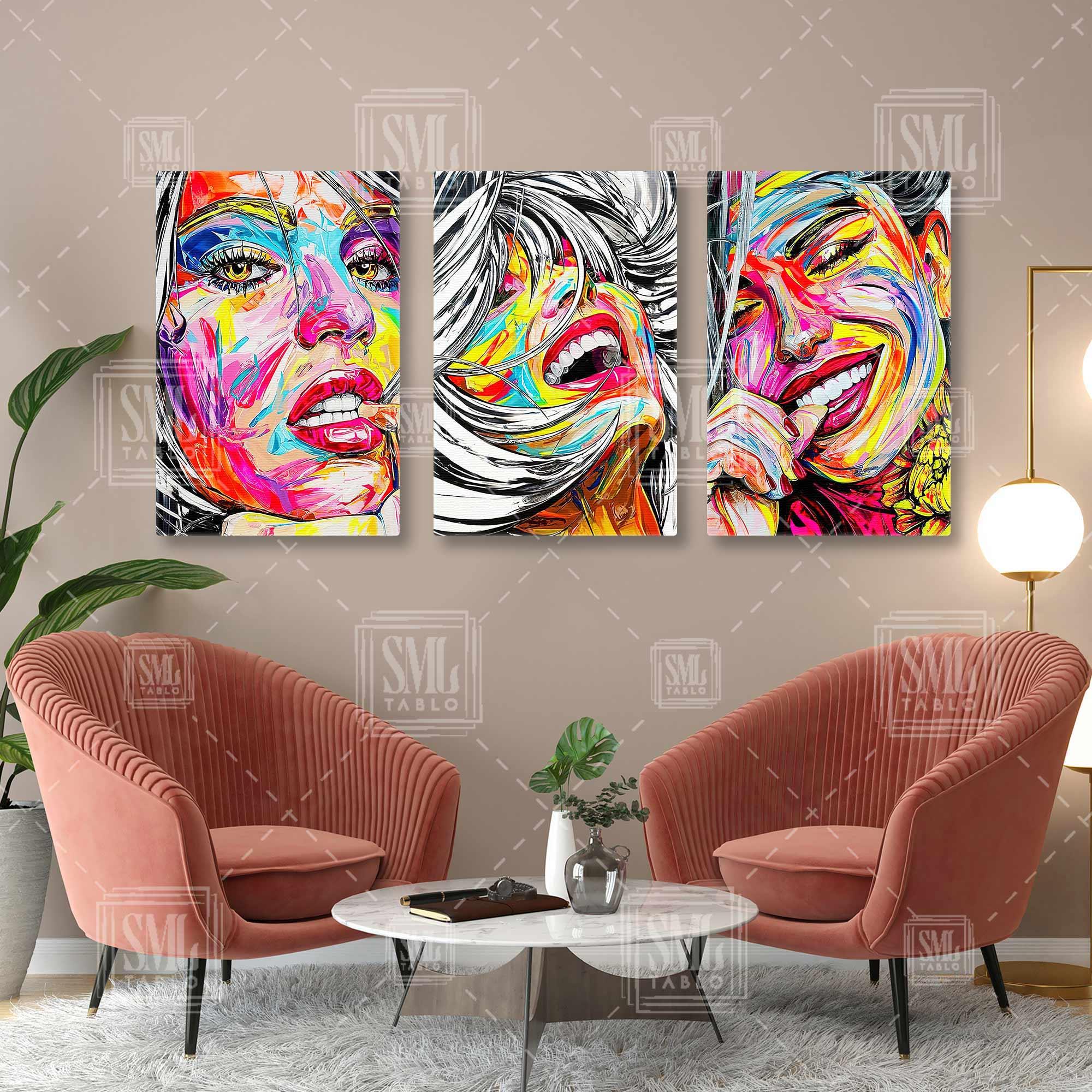 | Etiketler | Hareketli Saçlı Renkli Kadın İlüstrasyonu Portre Üçlü Kombin 3 lü Set Kanvas Tablo Tablosu Tabloları Tuvali |