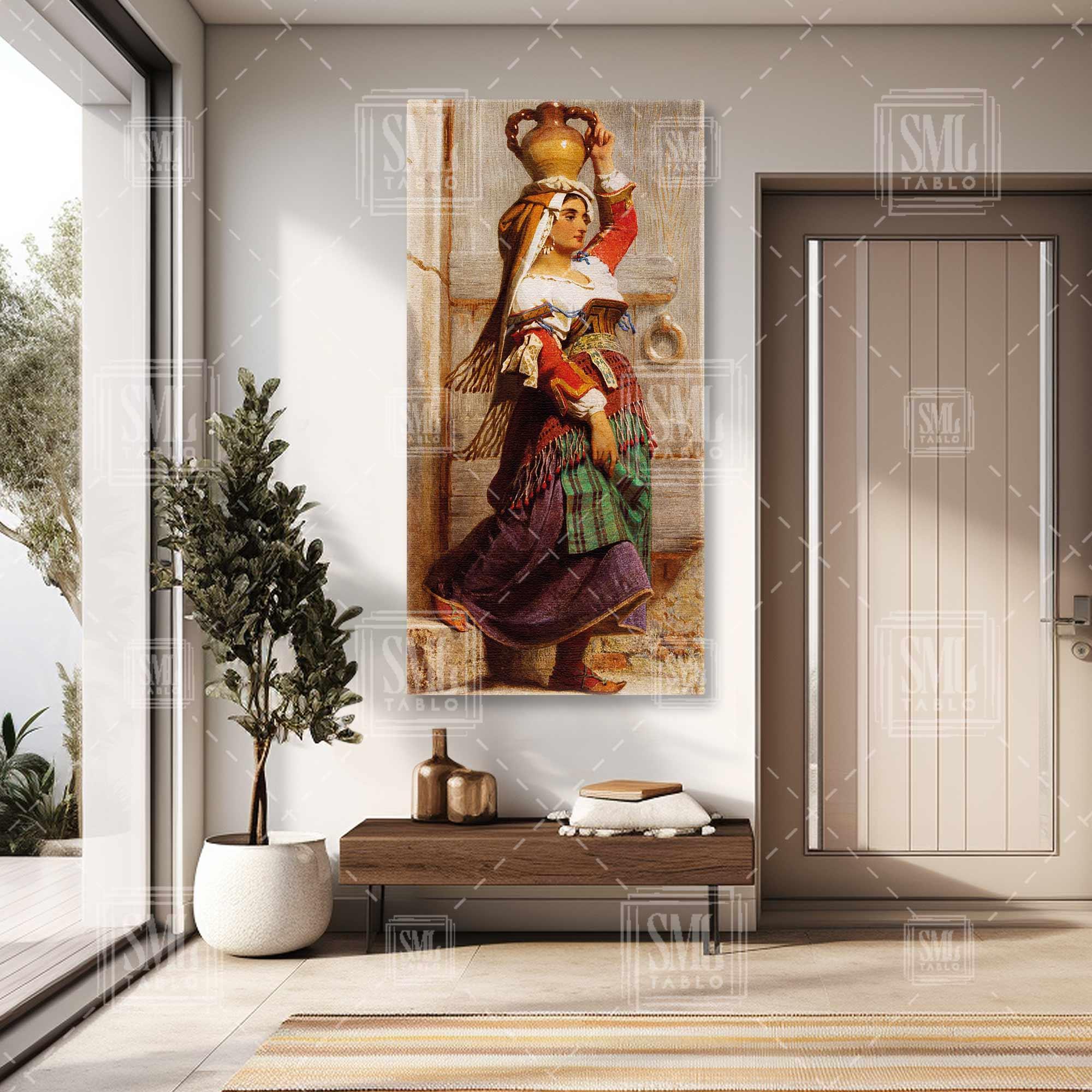| Etiketler | Kafasında Su Testisi Taşıyan Geleneksel Kıyafetli Köylü Kadın Boyuna Dikey Kanvas Tablo Tablosu Tabloları Tuvali |