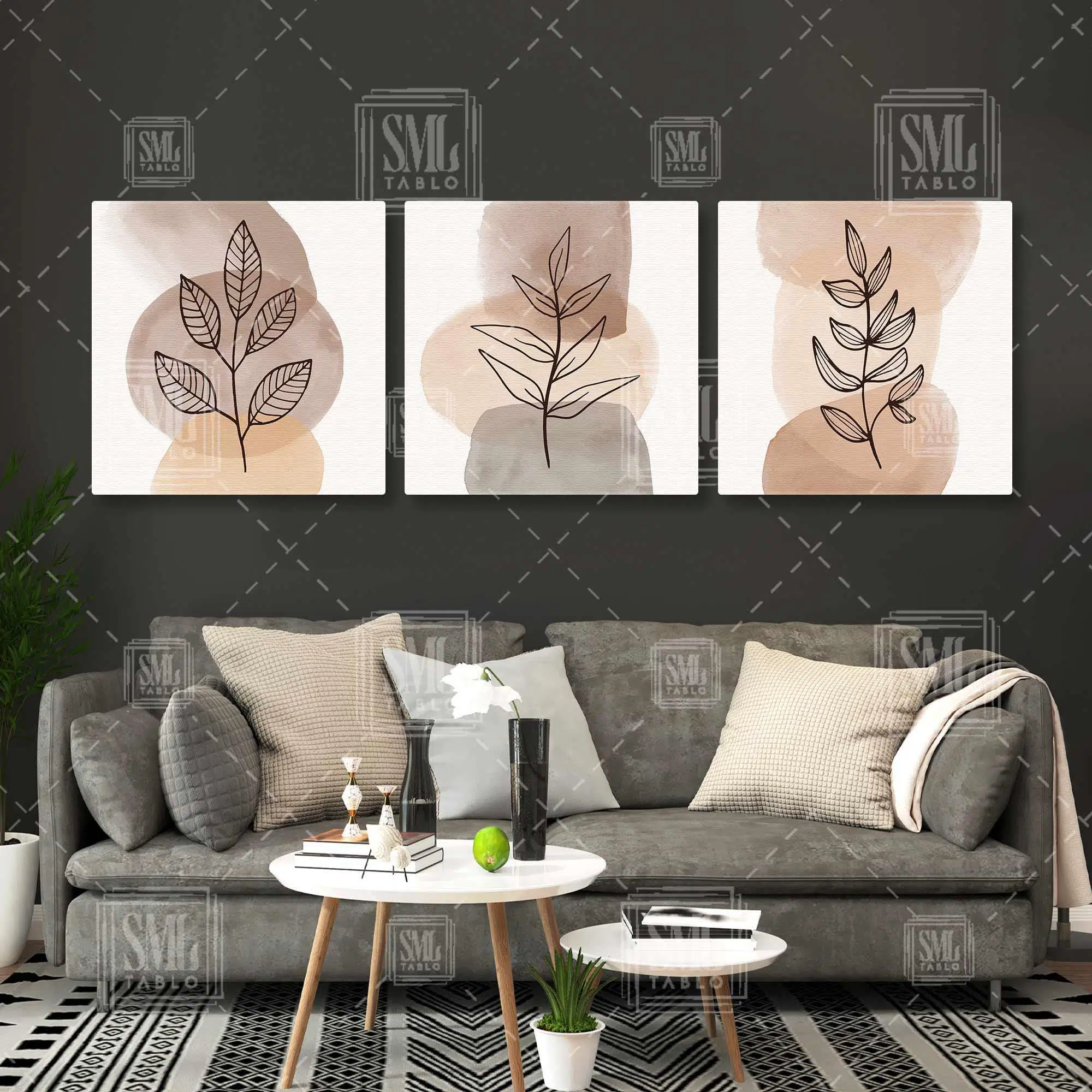 | Etiketler | Kahverengi Tonlarında Sulu Boya İzleri ve Yaprak Line Art Boho Üçlü Kombin 3lü Set Kanvas Tablo Tablosu Tabloları Tuvali Poster Posteri |