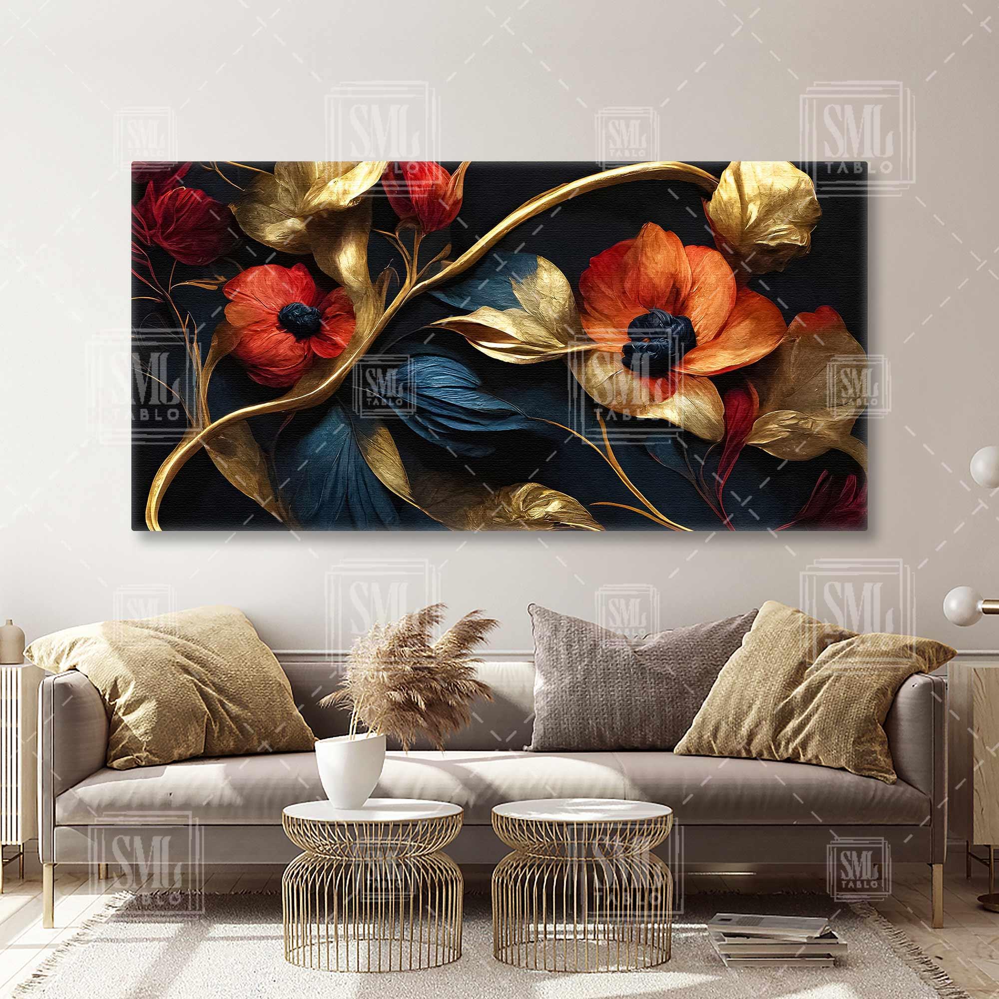 | Etiketler | Kırmızı Çiçek Ve Gold Yapraklar Dekoratif Enine Yatay Kanvas Tablo Tablosu Tabloları Tuvali |