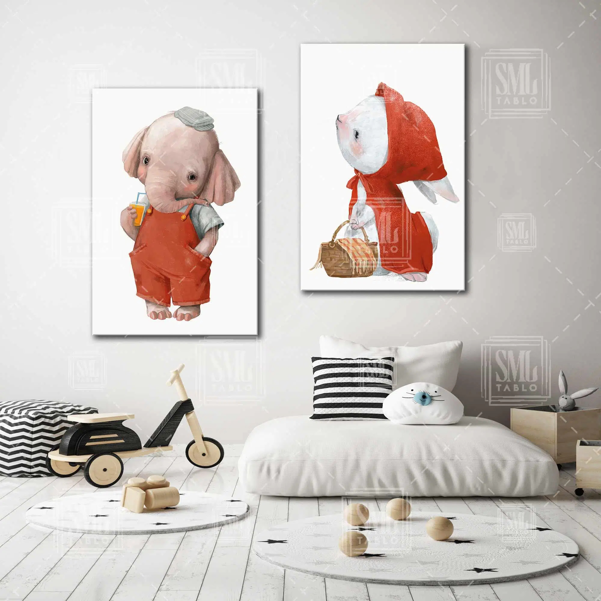 | Etiketler | Kırmızı Elbiseli Fil Kırmızı Başlıklı Tavşan Çocuk Odası Dekor İkili Kombin 2 li Set Kanvas Tablo Tablosu Tabloları Tuvali Poster Posteri |