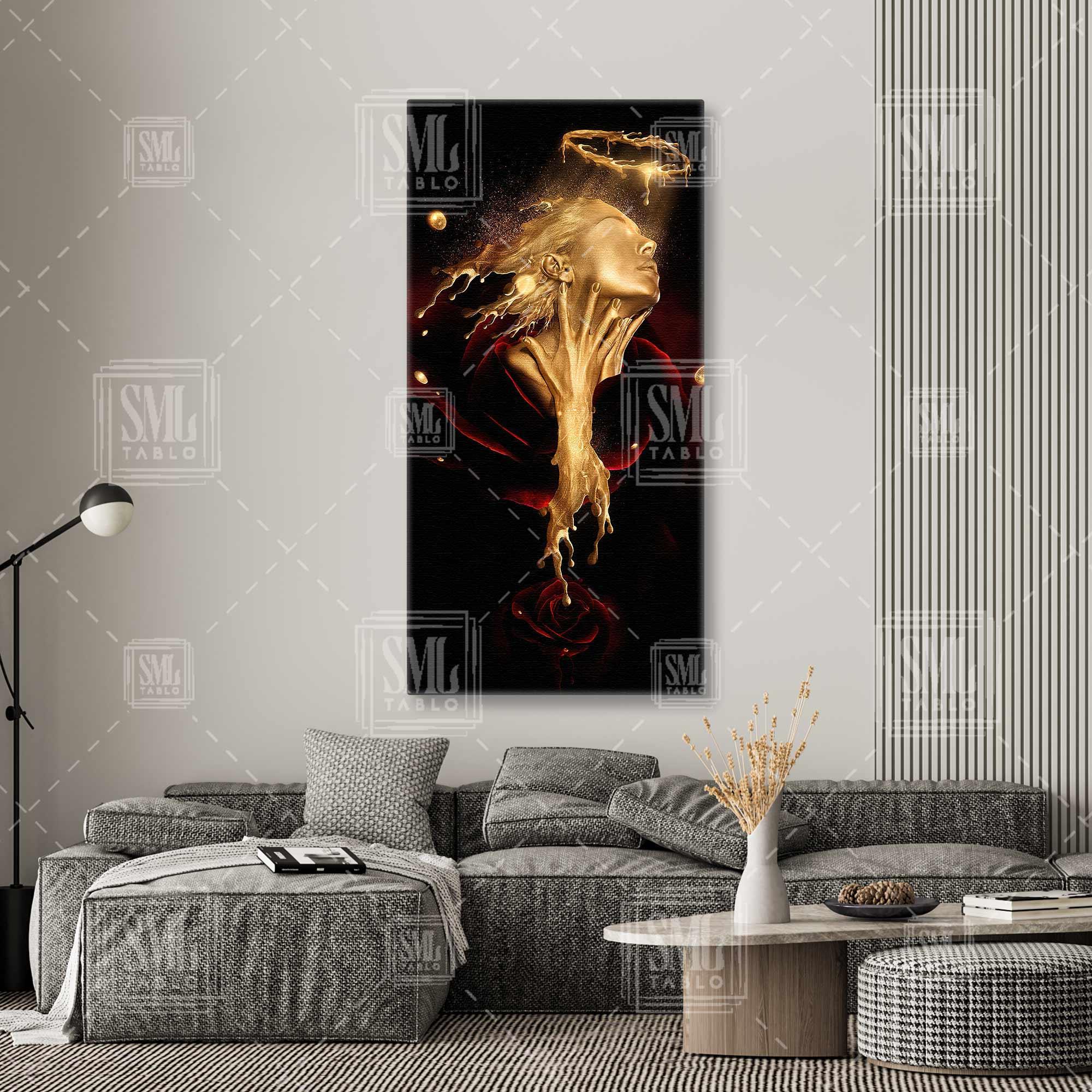 | Etiketler | Kırmızı Gül Ve Altın Yaldızdan Hareli Kadın Boyuna Dikey Kanvas Tablo Tablosu Tabloları Tuvali |