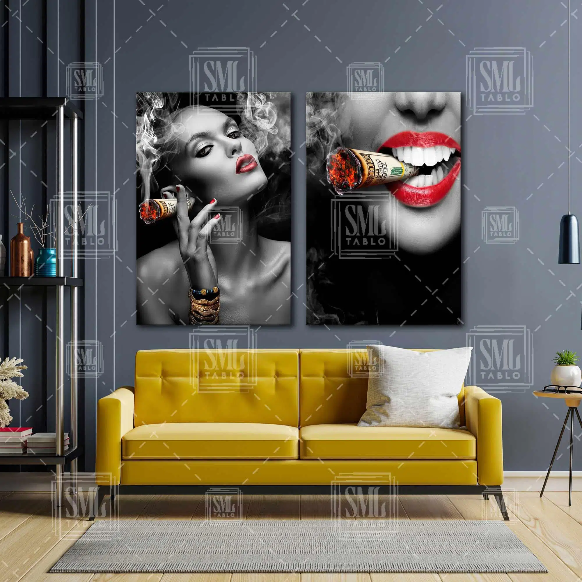 | Etiketler | Kırmızı Rujlu Kadın Yanan Dolar Duman İkili Kombin 2 li Set Kanvas Tablo Tablosu Tabloları Tuvali Poster Posteri |