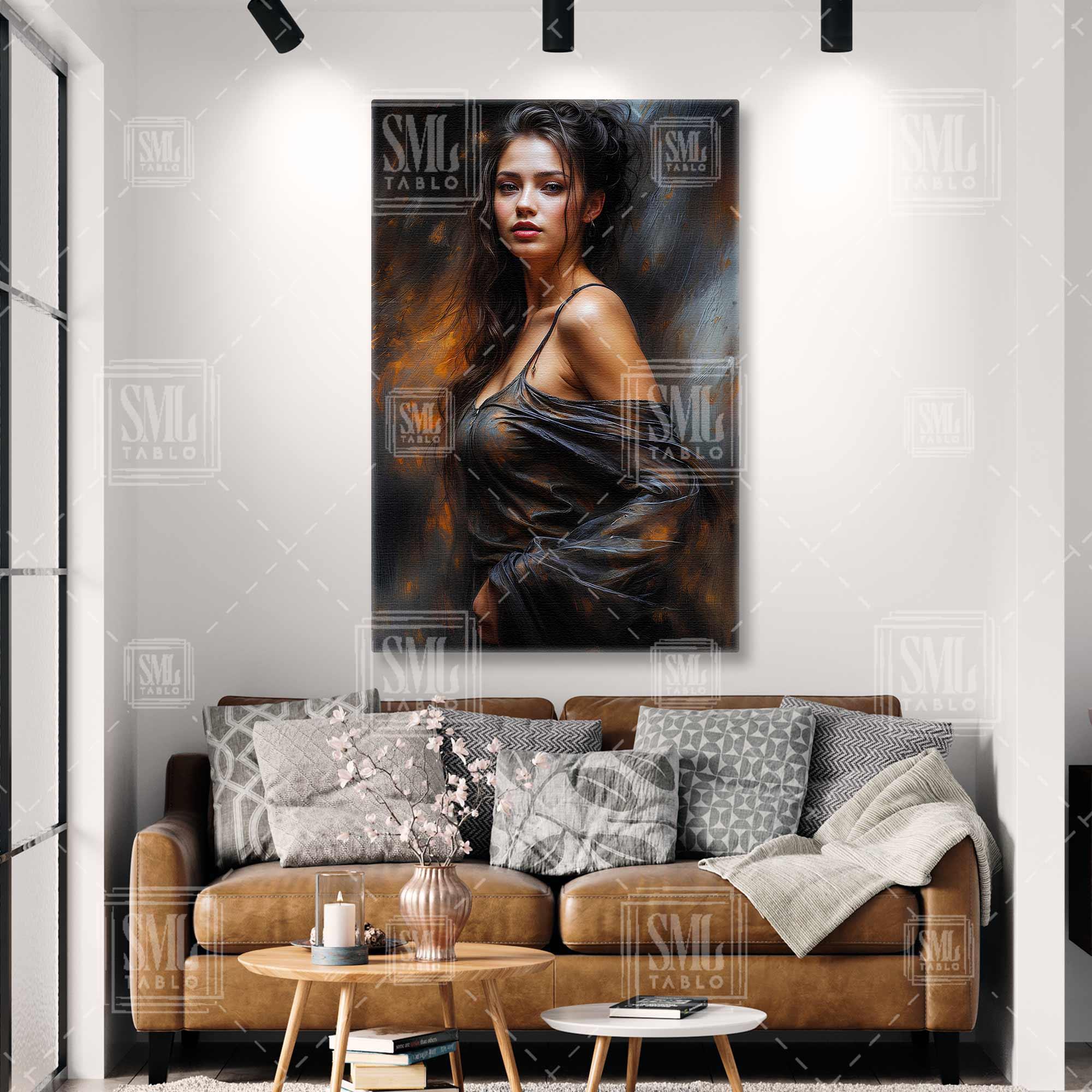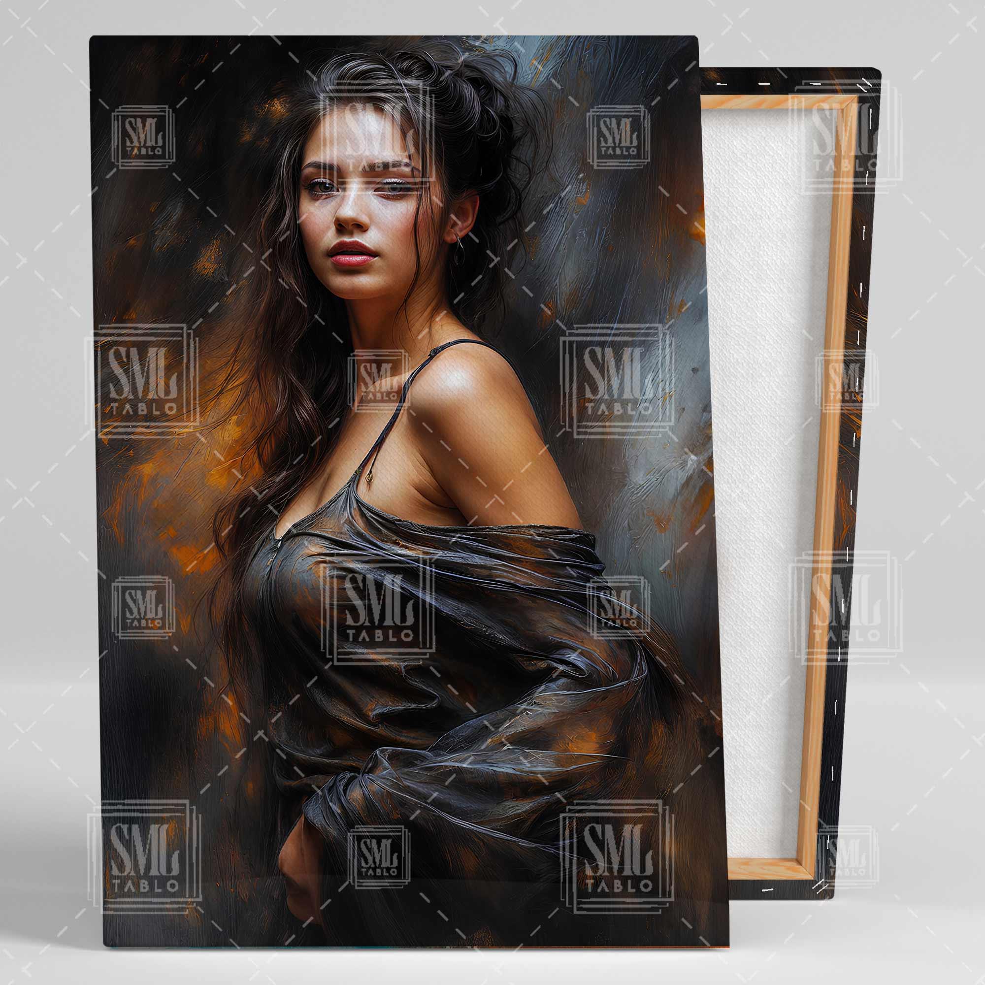 | Etiketler | Kıvılcımların İçinde Siyah Elbiseli Gecelik Giyen Esmer Kadın Dikey Kanvas Tablo Tablosu Tabloları Tuvali |