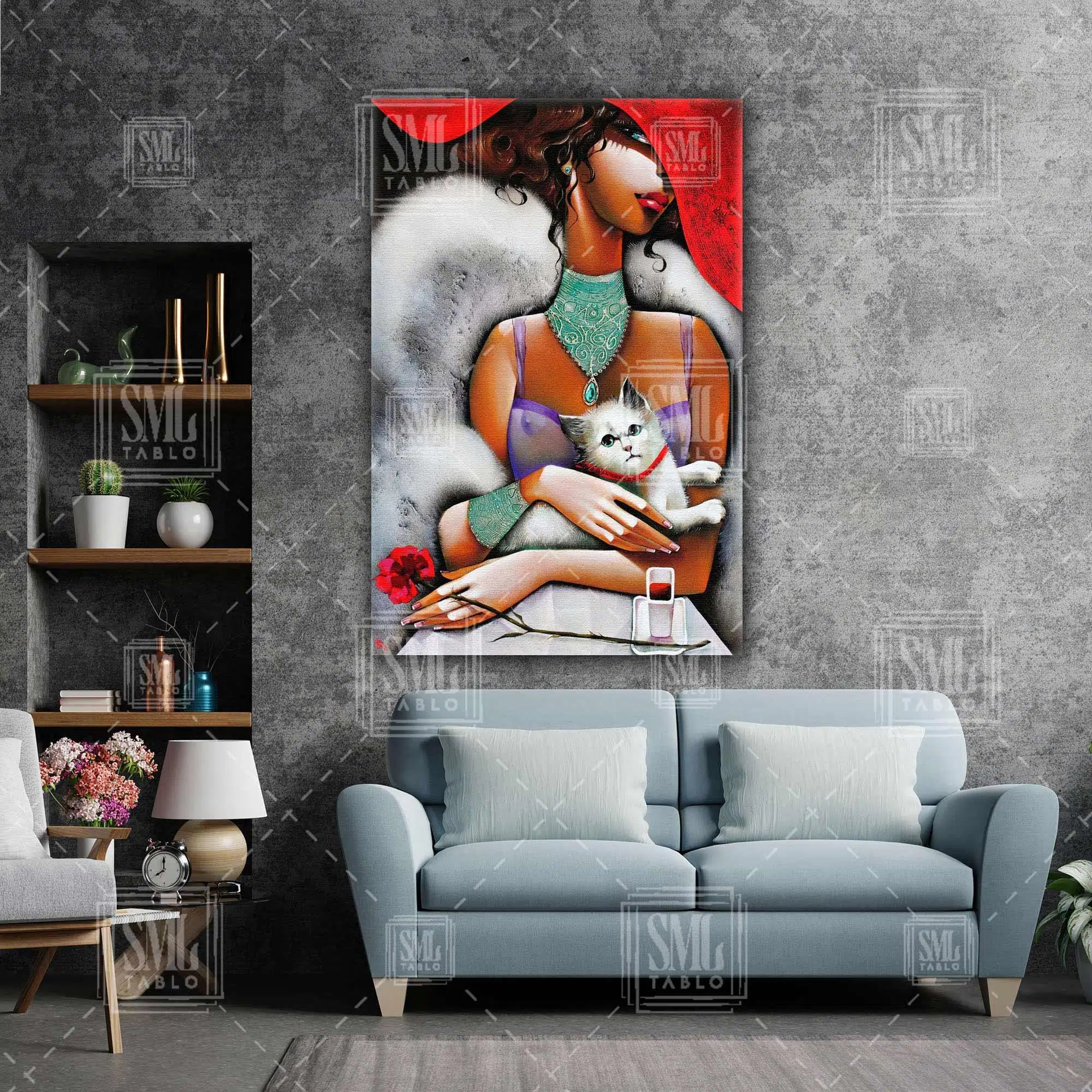 | Etiketler | Kucağında Beyaz Kedi Oturan Kırmızı Şapkalı Kadın Soyut Modern Dekoratif Dikey Kanvas Tablo Tablosu Tabloları Tuvali Poster Posteri |