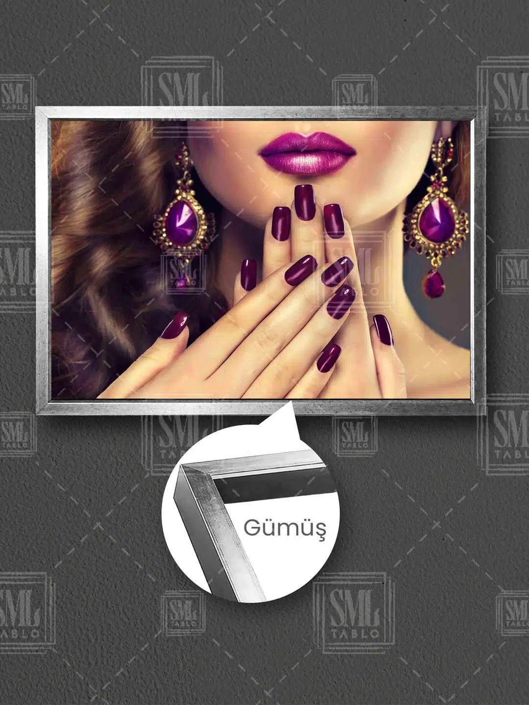 | Etiketler | Mor Küpeli Ruj Oje Sürmüş Kadın Mor Küpeli Tırnak Makyaj Kuaför Dekor Çerçeveli Yatay Kanvas Tablo Tablosu Tabloları Tuvali Poster Posteri Çerçeveli Çerçeve |