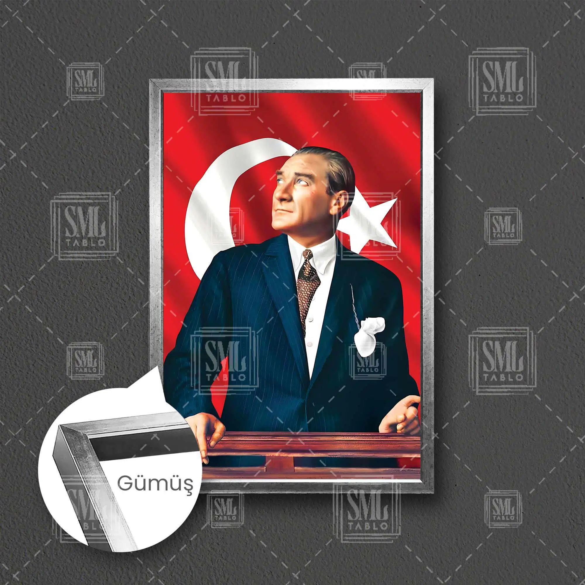 | Etiketler | Mustafa Kemal Atatürk Arkasında Bayrak Makam Odası Dekor Çerçeveli Dikey Kanvas Tablo Tablosu Tabloları Tuvali Poster Posteri Çerçeveli Çerçeve |