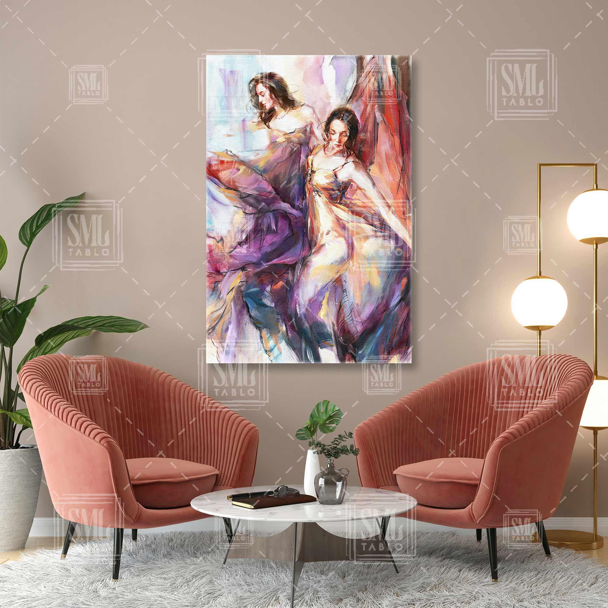 | Etiketler | Pembe Tonlarında Uçuşan Saten Elbiseli İki Kadın Moda Dikey Kanvas Tablo Tablosu Tabloları Tuvali |