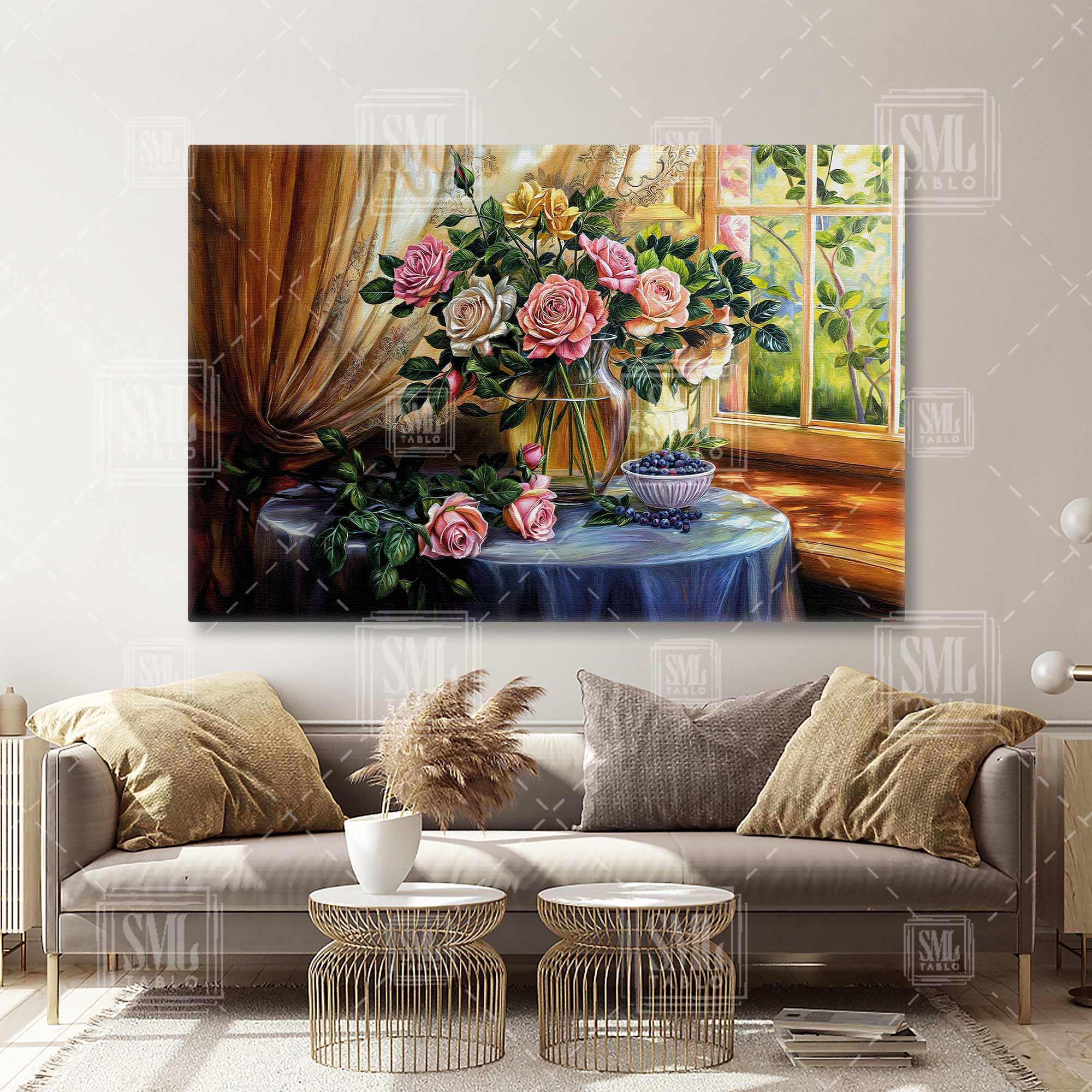 | Etiketler | Pencere Önünde Vazodaki Güller Vazo Saksı Yaban Mersini Çiçek Gül Yatay Kanvas Tablo Tablosu Tabloları Tuvali |