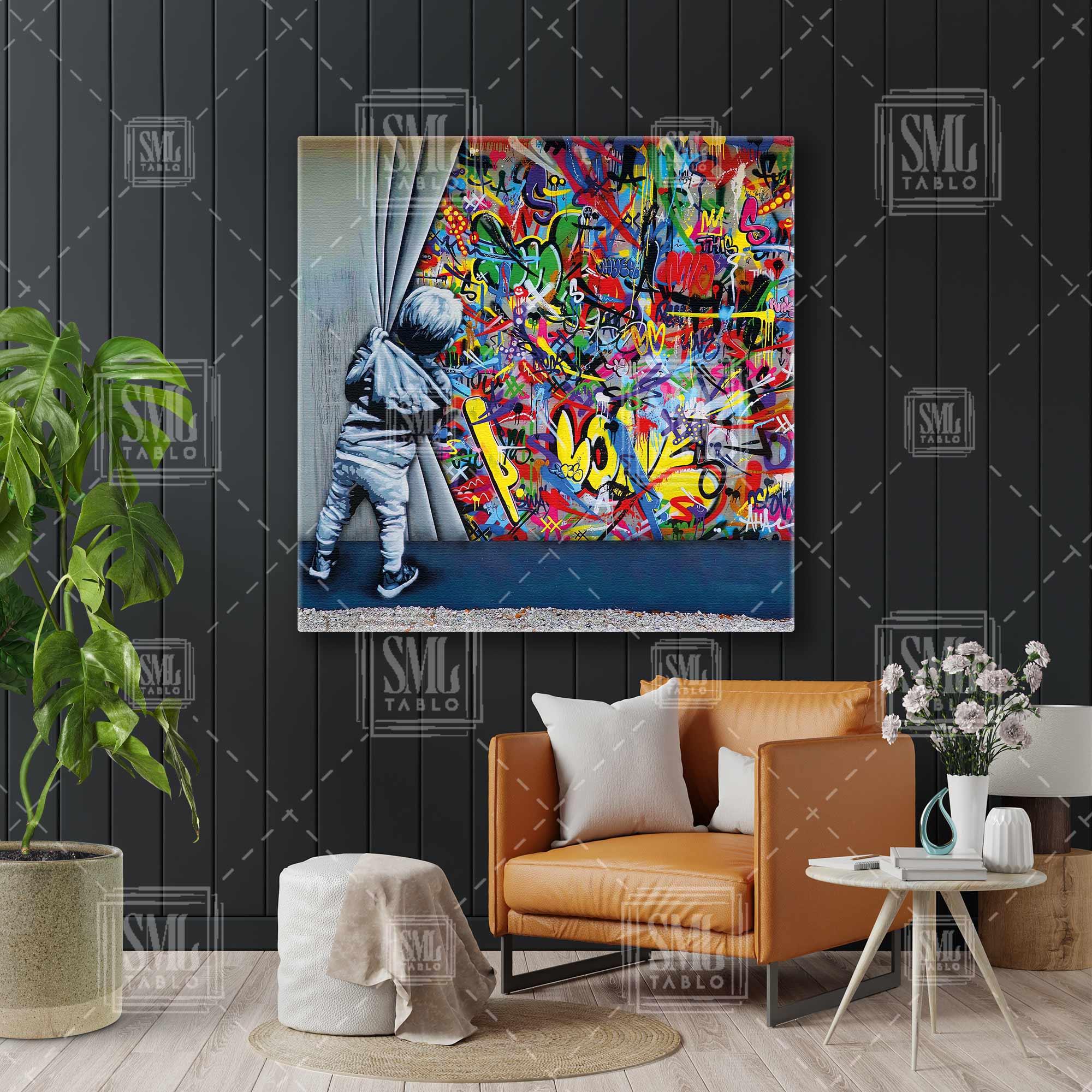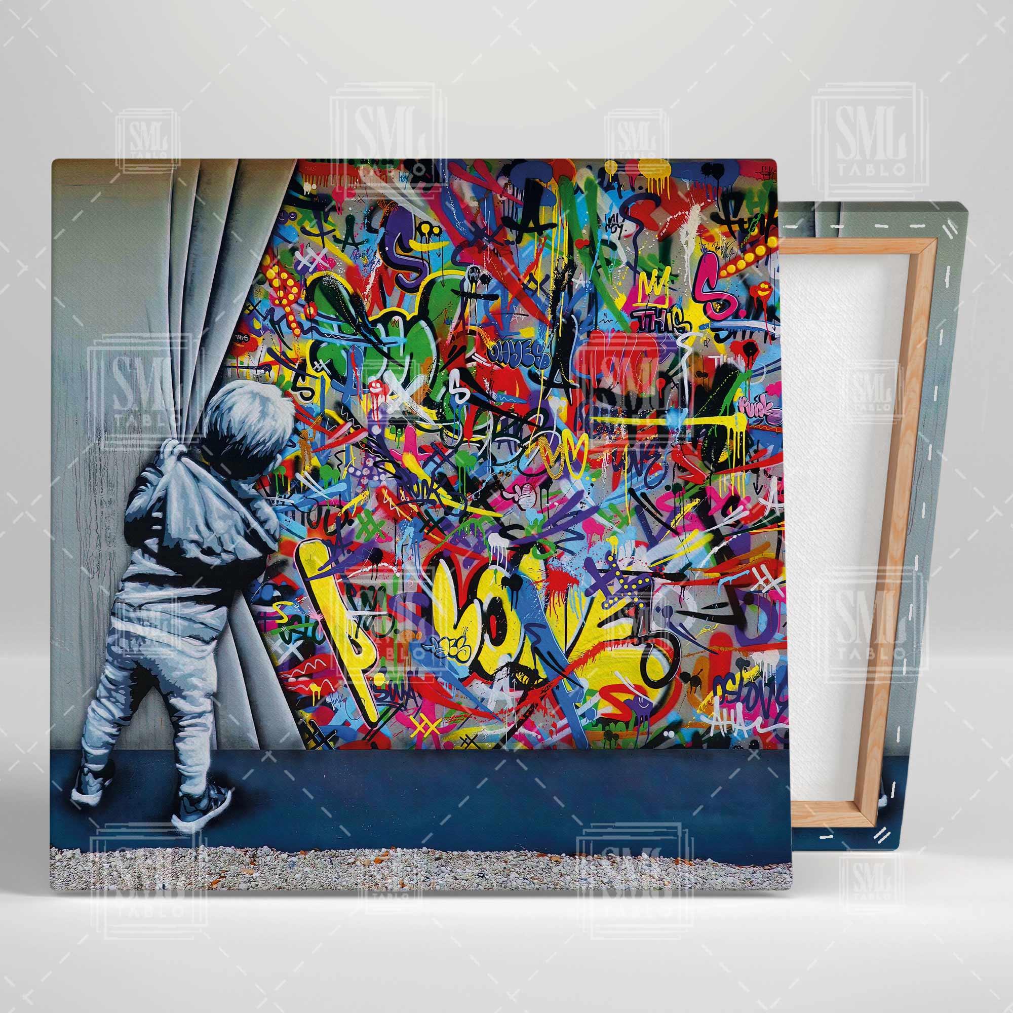 | Etiketler | Perdenin Arkasından Bakan Çocuk Banksy Grafitti Duvar Sanatı Kare Kanvas Tablo Tablosu Tabloları Tuvali |