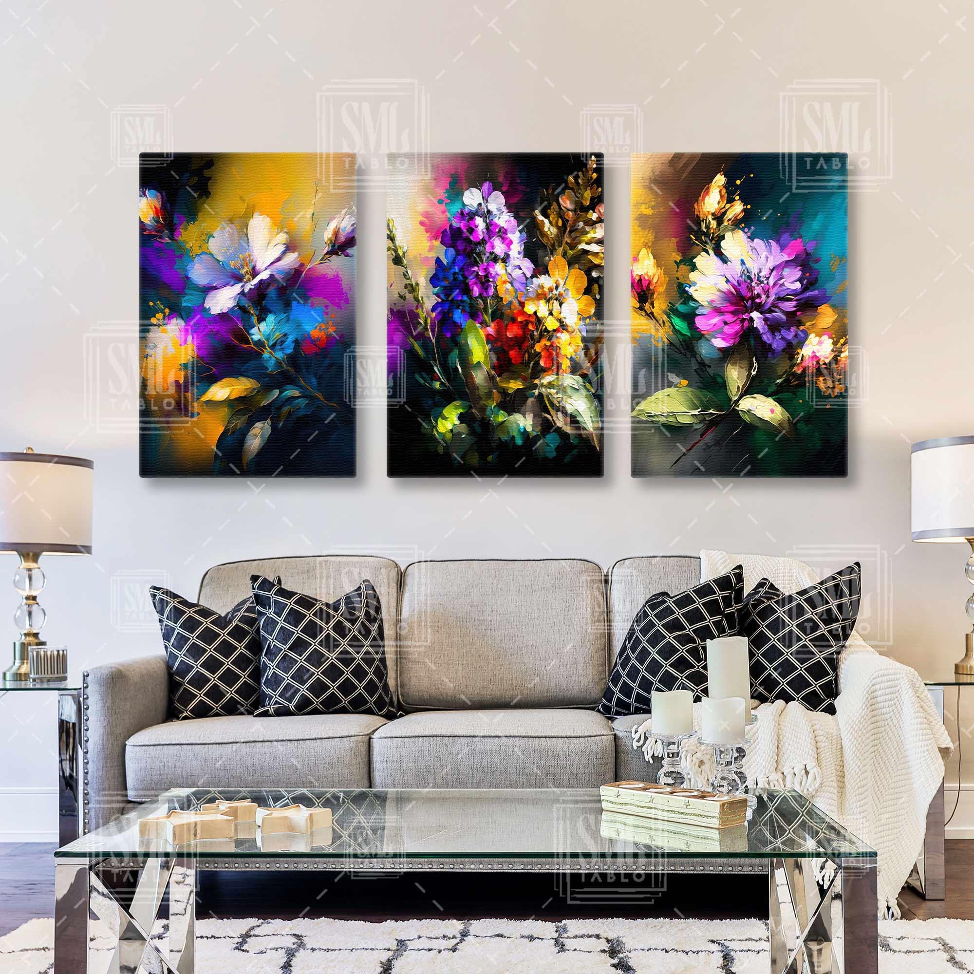 | Etiketler | Renkli Çiçek Demeti Fırça İzleri Doğa Dekoratif Üçlü Kombin 3 lü Set Kanvas Tablo Tablosu Tabloları Tuvali |