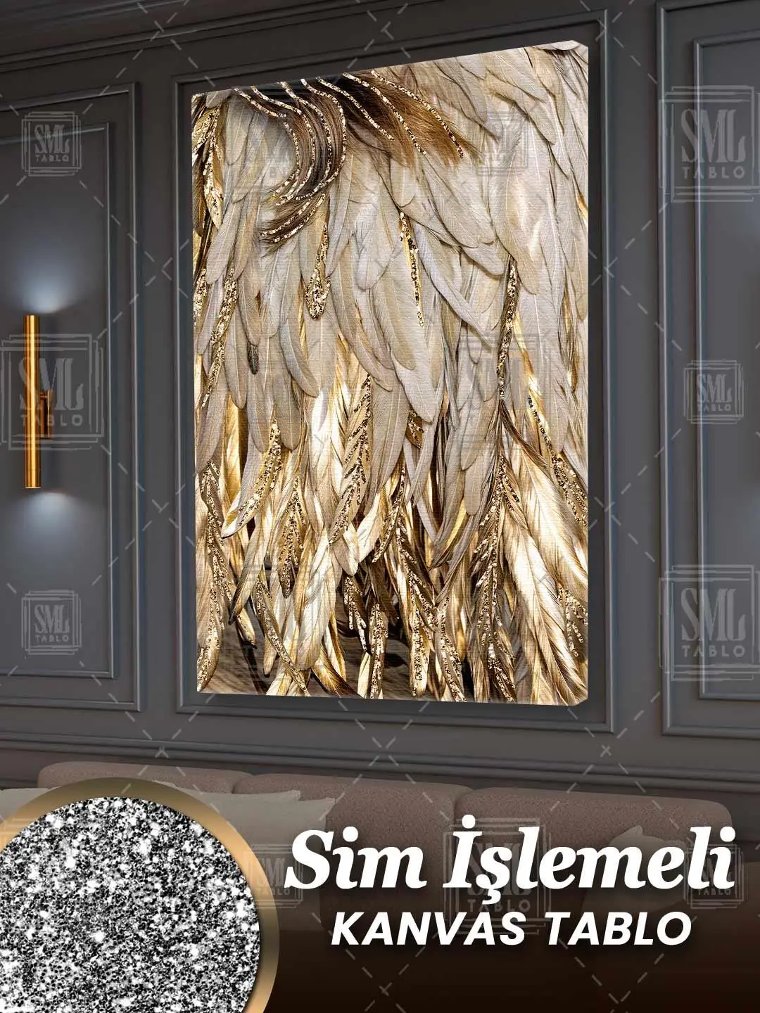 | Etiketler | Sim İşlemeli Altın Pırıltılı Beyaz Kuş Tüyü Dekoratif Simli Dikey Kanvas Tablo Tablosu Tabloları Tuvali Poster Posteri |