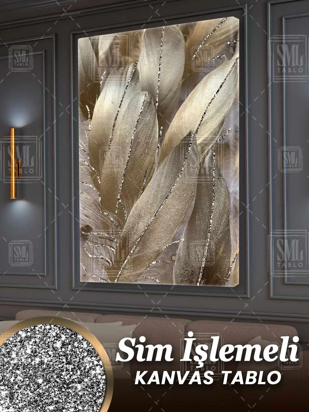 | Etiketler | Sim İşlemeli Altın Tüyler Dekoratif Modern Simli Dikey Kanvas Tablo Tablosu Tabloları Tuvali Poster Posteri |
