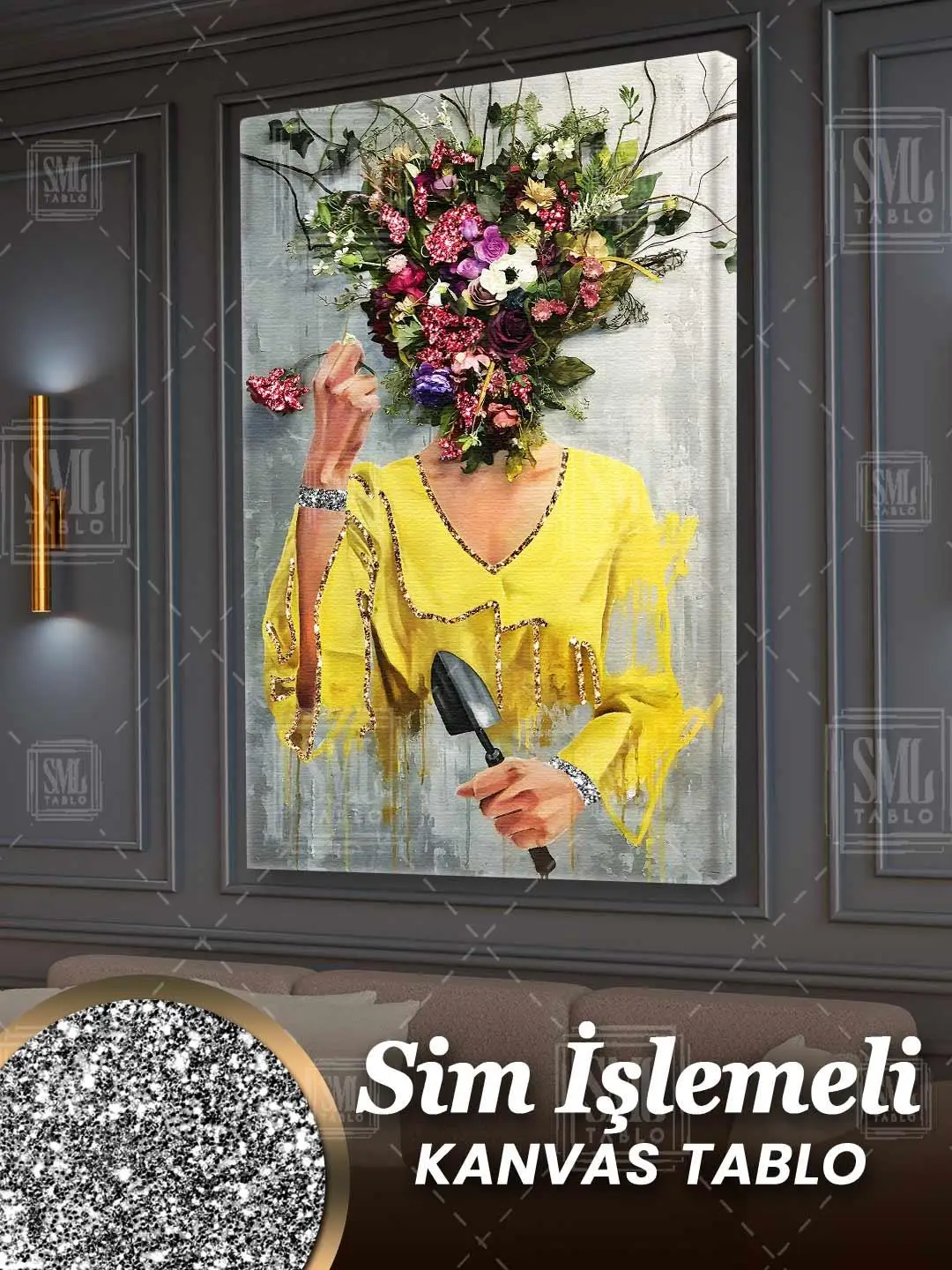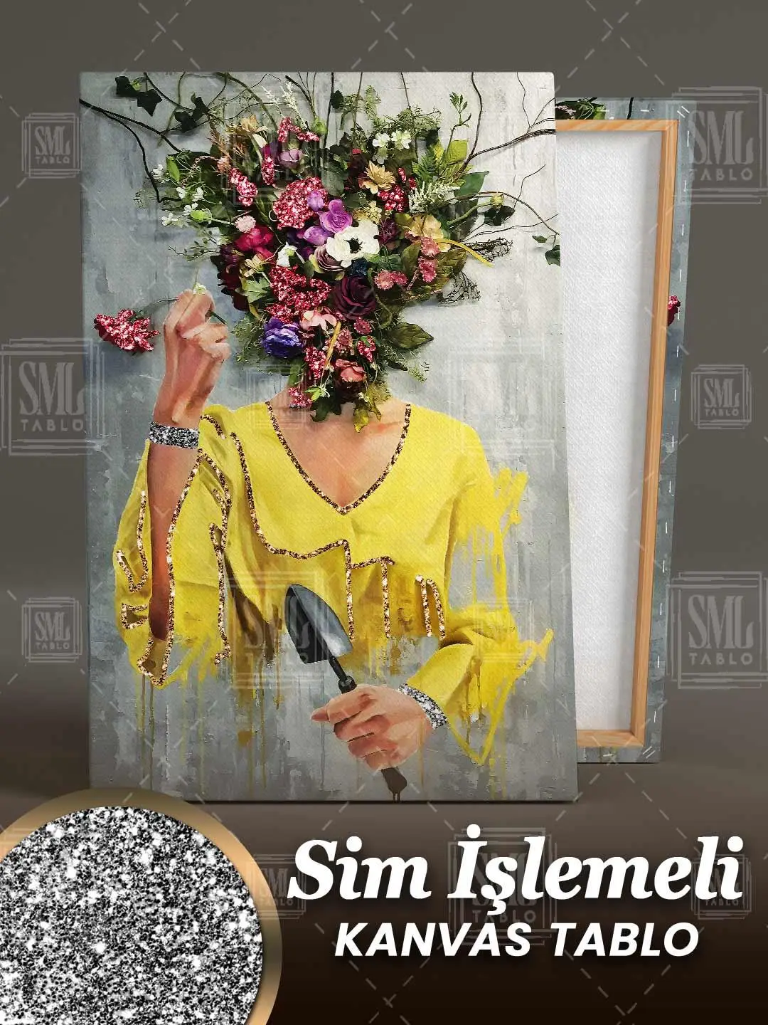 | Etiketler | Sim İşlemeli Çiçek Kafalı Kadın Renkli Pırıltılı Simli Dikey Kanvas Tablo Tablosu Tabloları Tuvali Poster Posteri |