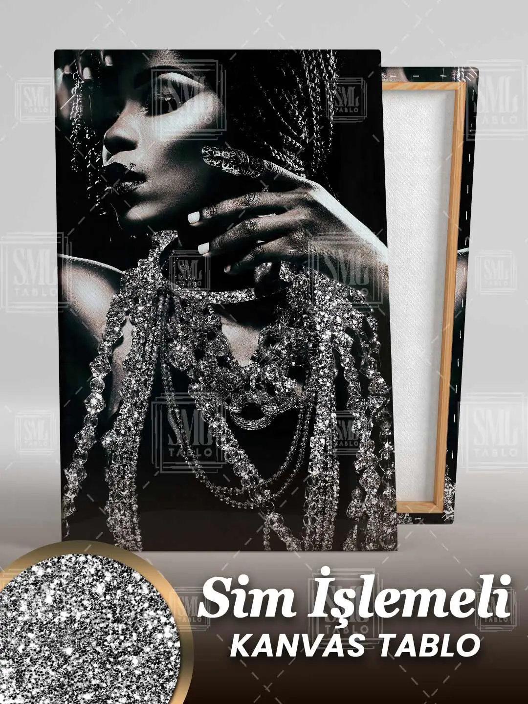 | Etiketler | Sim İşlemeli İnci Pırlanta Takılı Gözleri Kapalı Afrikalı Kadın Simli Dikey Kanvas Tablo Tablosu Tabloları Tuvali Poster Posteri |