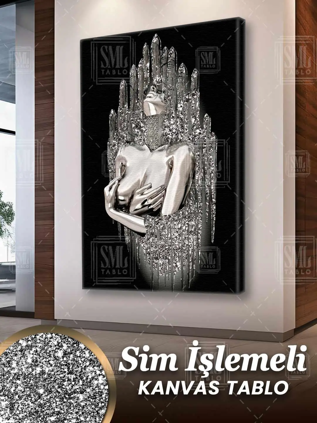 | Etiketler | Simli Metal Gümüş Nü Model Pırıltılı Metal Görünümlü Kadın Sim İşlemeli Dikey Kanvas Tablo Tablosu Tabloları Tuvali Poster Posteri |