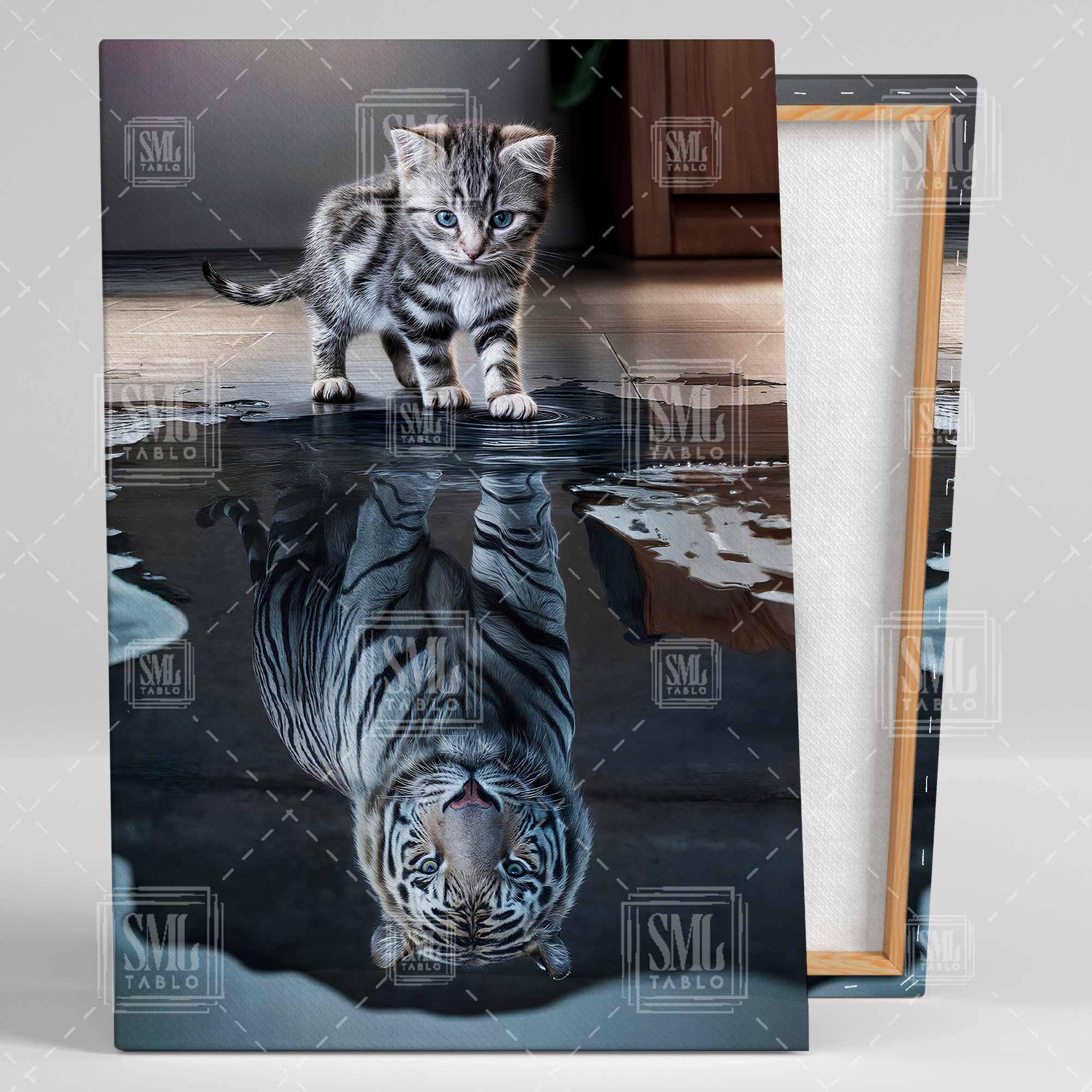 | Etiketler | Şirin Kedi VE Su Birikintisine Yansıyan Kaplan Özgüven Dikey Kanvas Tablo Tablosu Tabloları Tuvali |