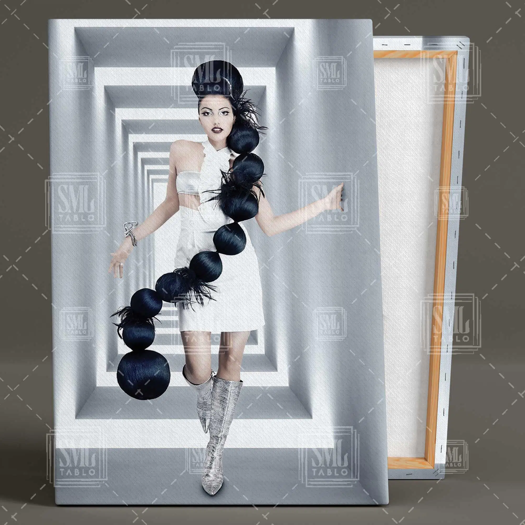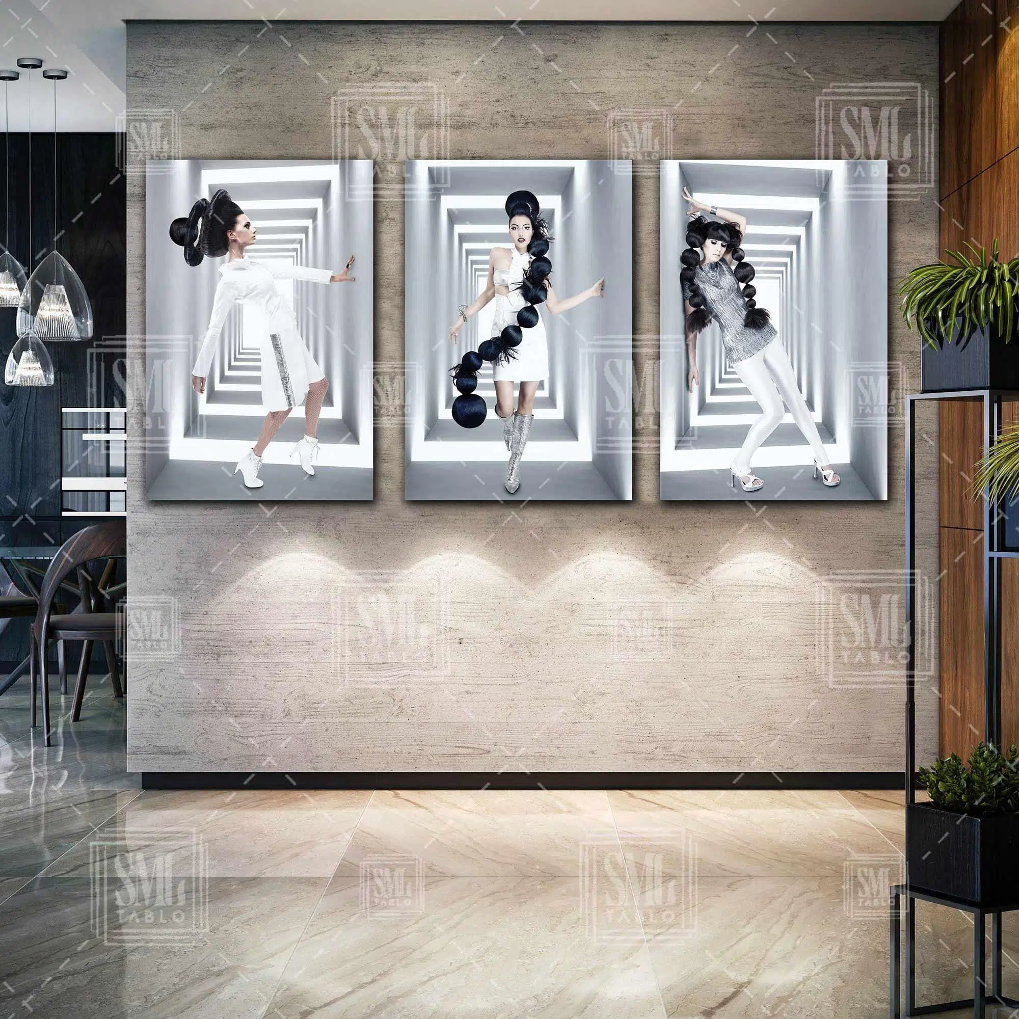 | Etiketler | Siyah Uzun Saçlı Koridorda Poz Veren Manken Makyaj Üçlü Kombin 3 lü Set Kanvas Tablo Tablosu Tabloları Tuvali Poster Posteri |