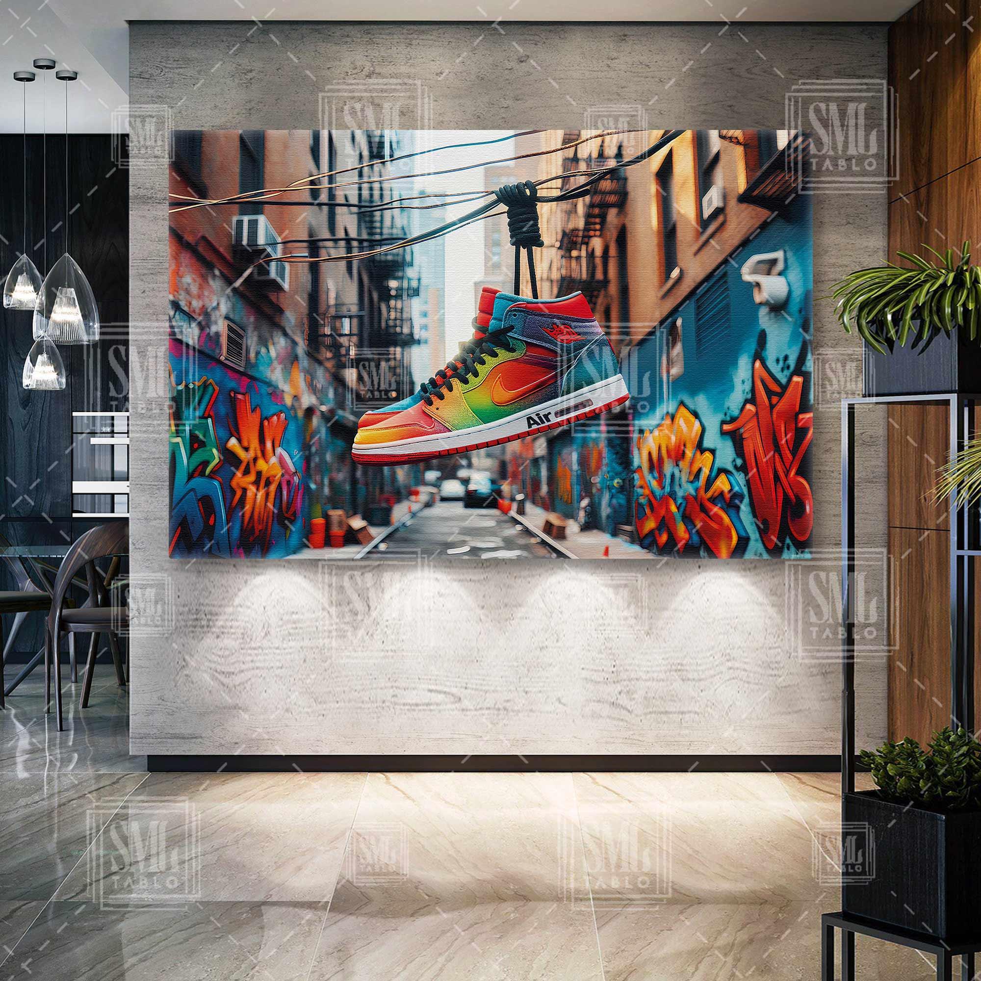 | Etiketler | Sokakta İpe Asılı Jordan Ayakkabı Grafitti Boyalı Sokak Sokak Sanatı Yatay Kanvas Tablo Tablosu Tabloları Tuvali |