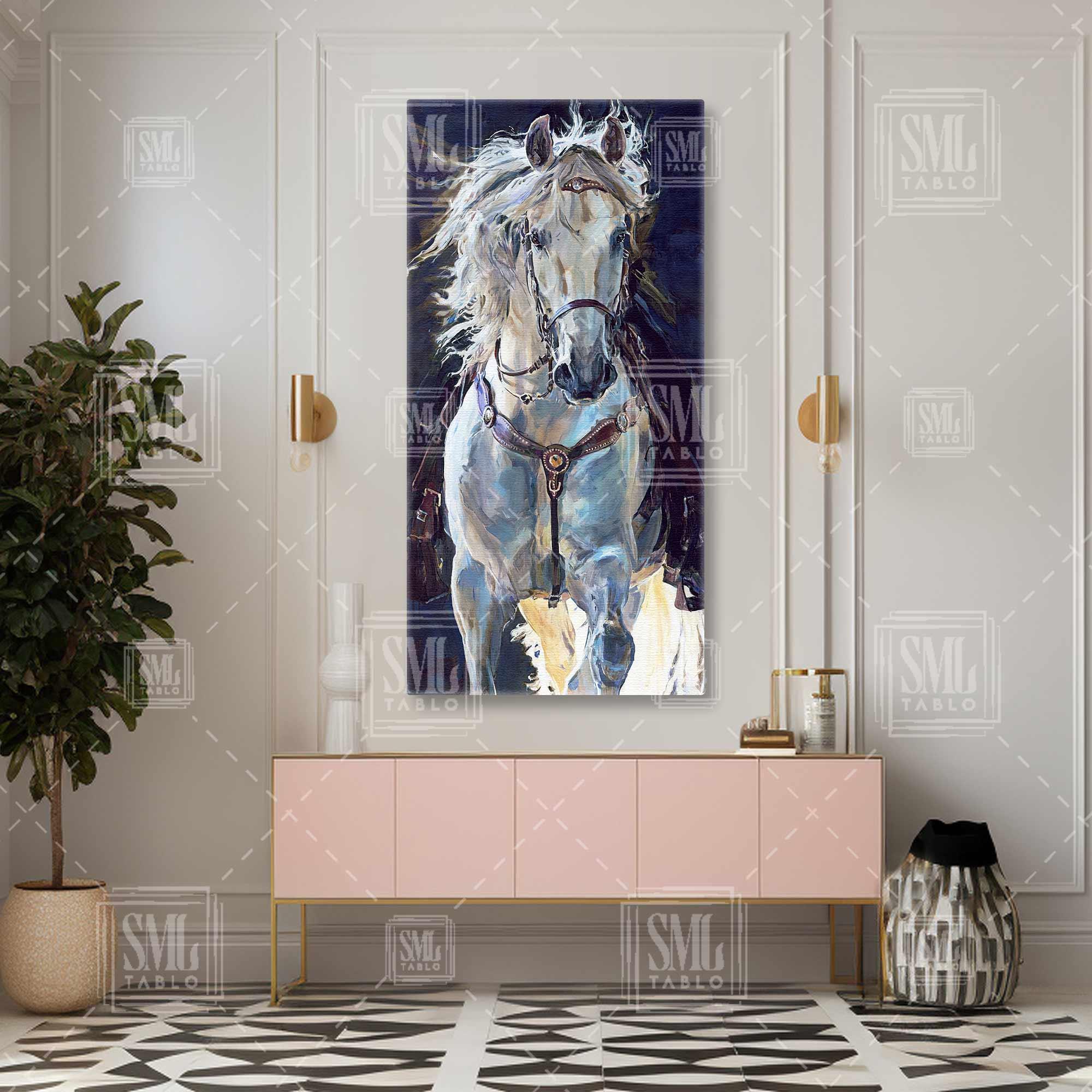 | Etiketler | Yeleleri Uçuşarak Koşan Asil Beyaz At Deri Aksesuarlı Fırça İzleri Boyuna Dikey Kanvas Tablo Tablosu Tabloları Tuvali |