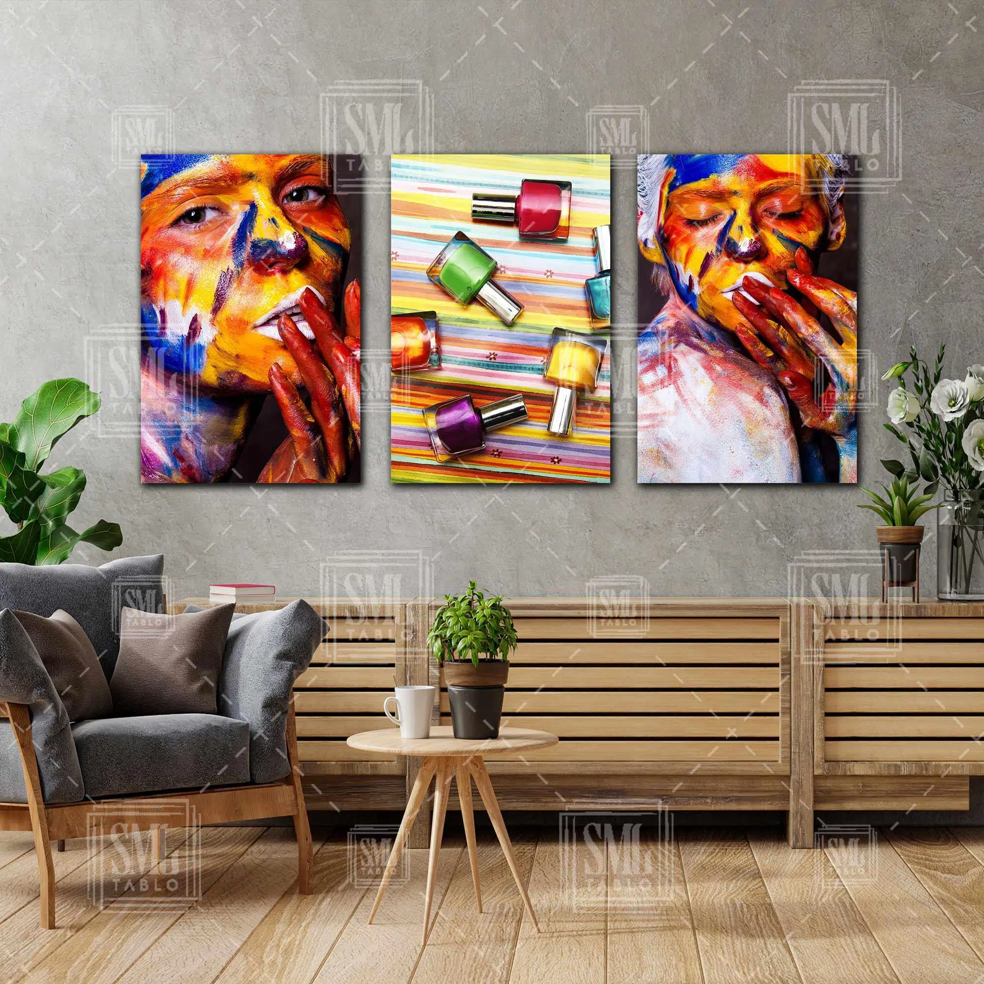 | Etiketler | Yüzü Boyalı Makyaj Yapmış Kadın Renkli Ruj Şişeleri Kuaför Dekor Üçlü Kombin 3 lü Set Kanvas Tablo Tablosu Tabloları Tuvali Poster Posteri |